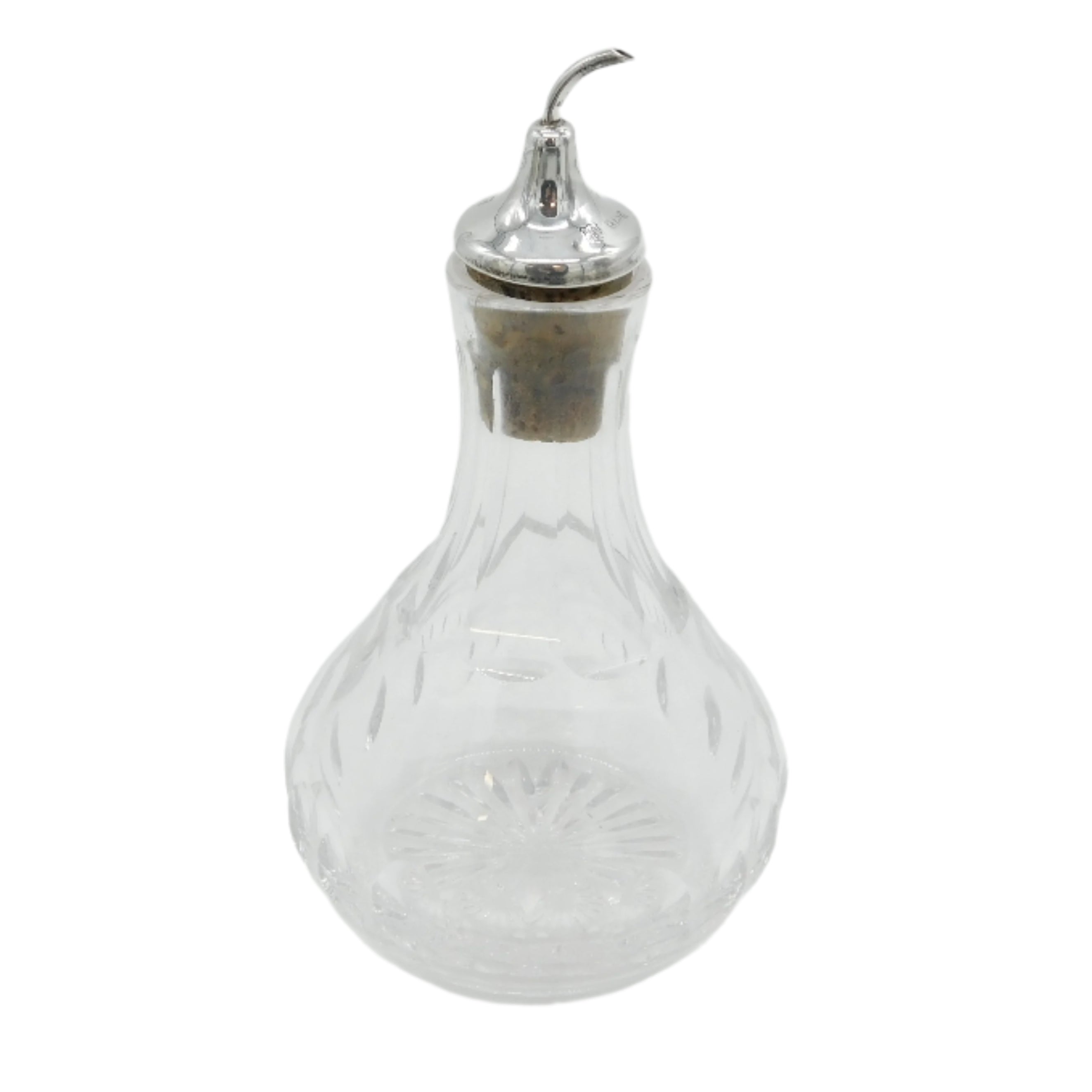 Sterling Silver Topped Cut Glass Bitters Pourer Vintage 1959 Birmingham