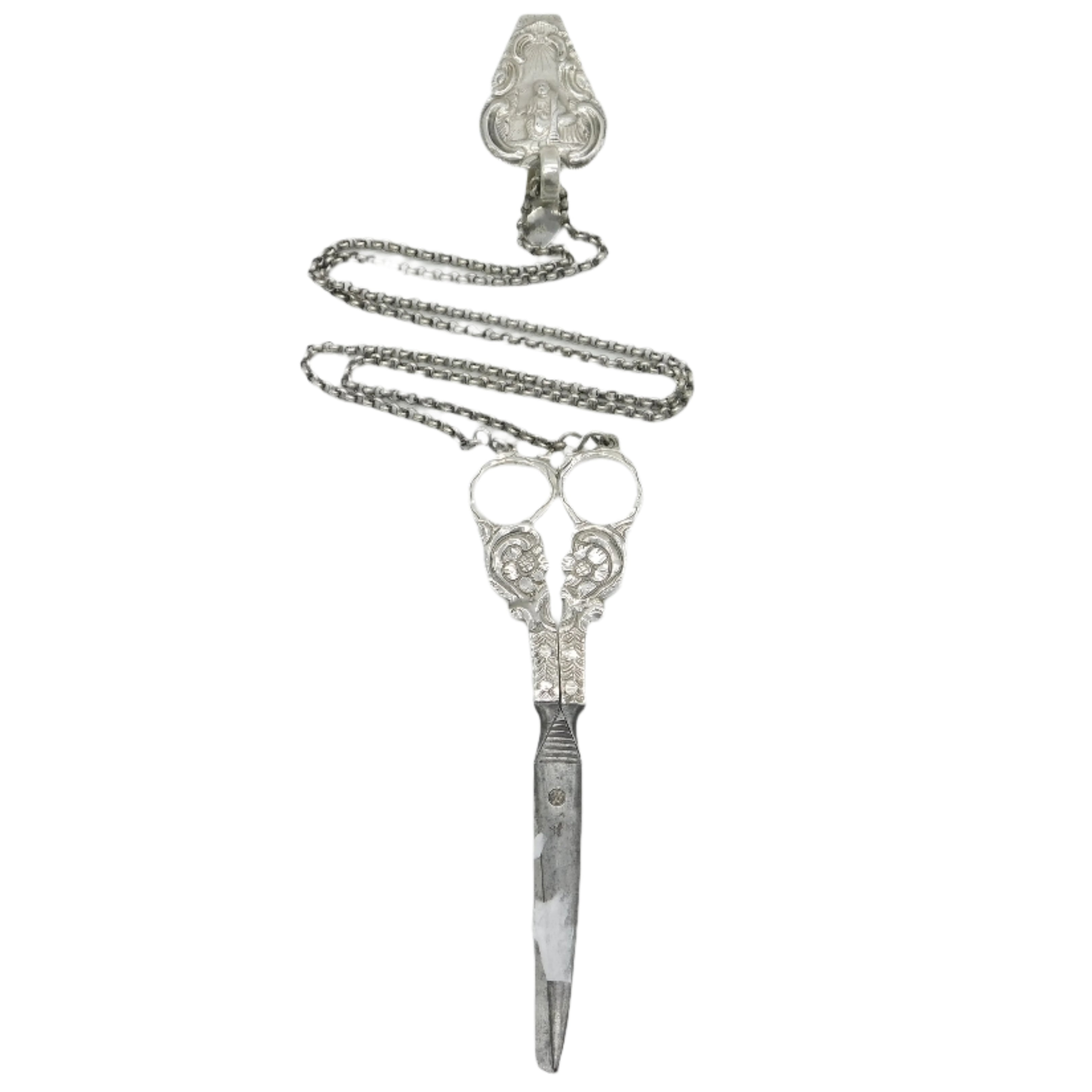 19th Century Dutch Sterling Silver Sewing Chatelaine Scissors Antique c1860