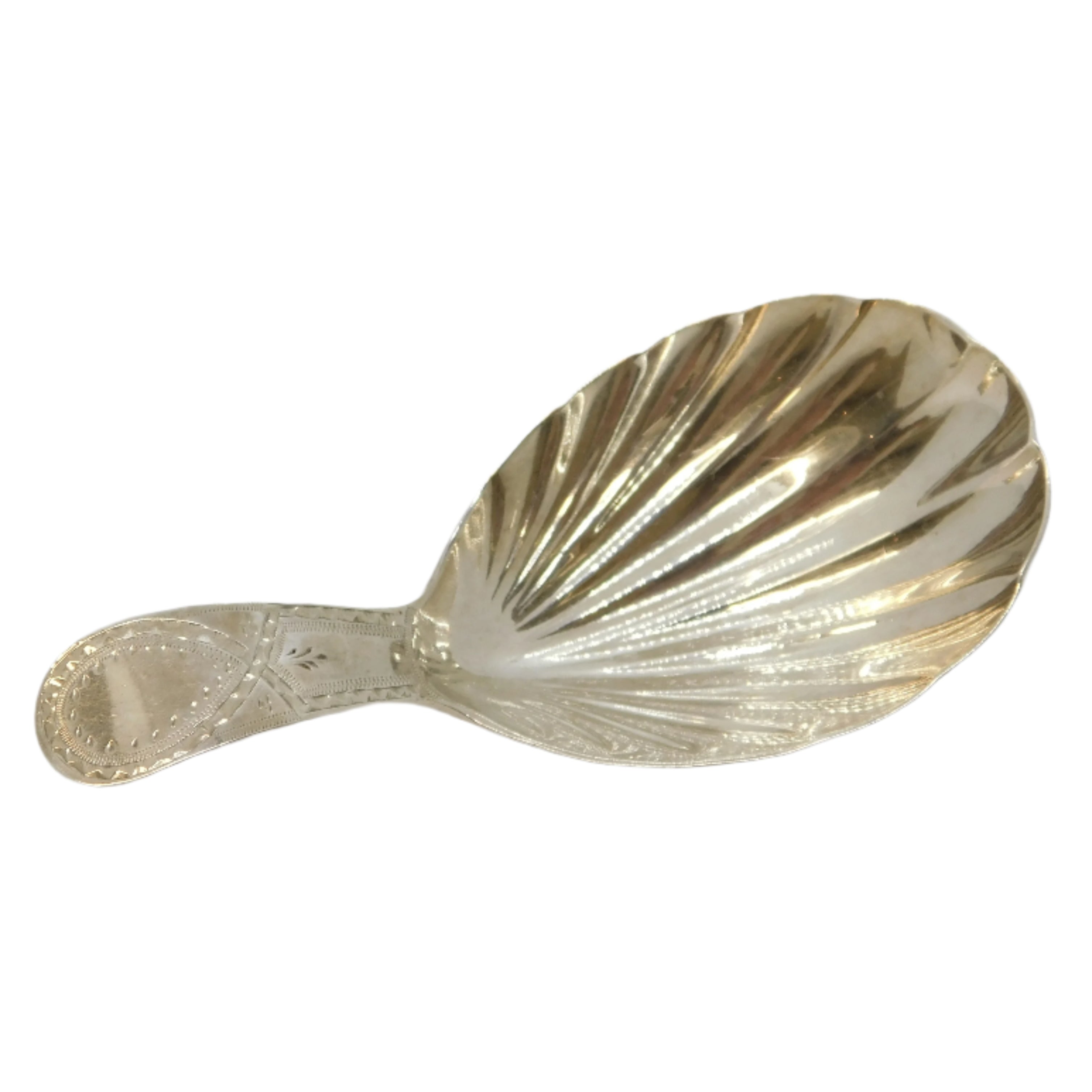 George III Sterling Silver Shell Bowl Tea Caddy Spoon Antique 1788 London