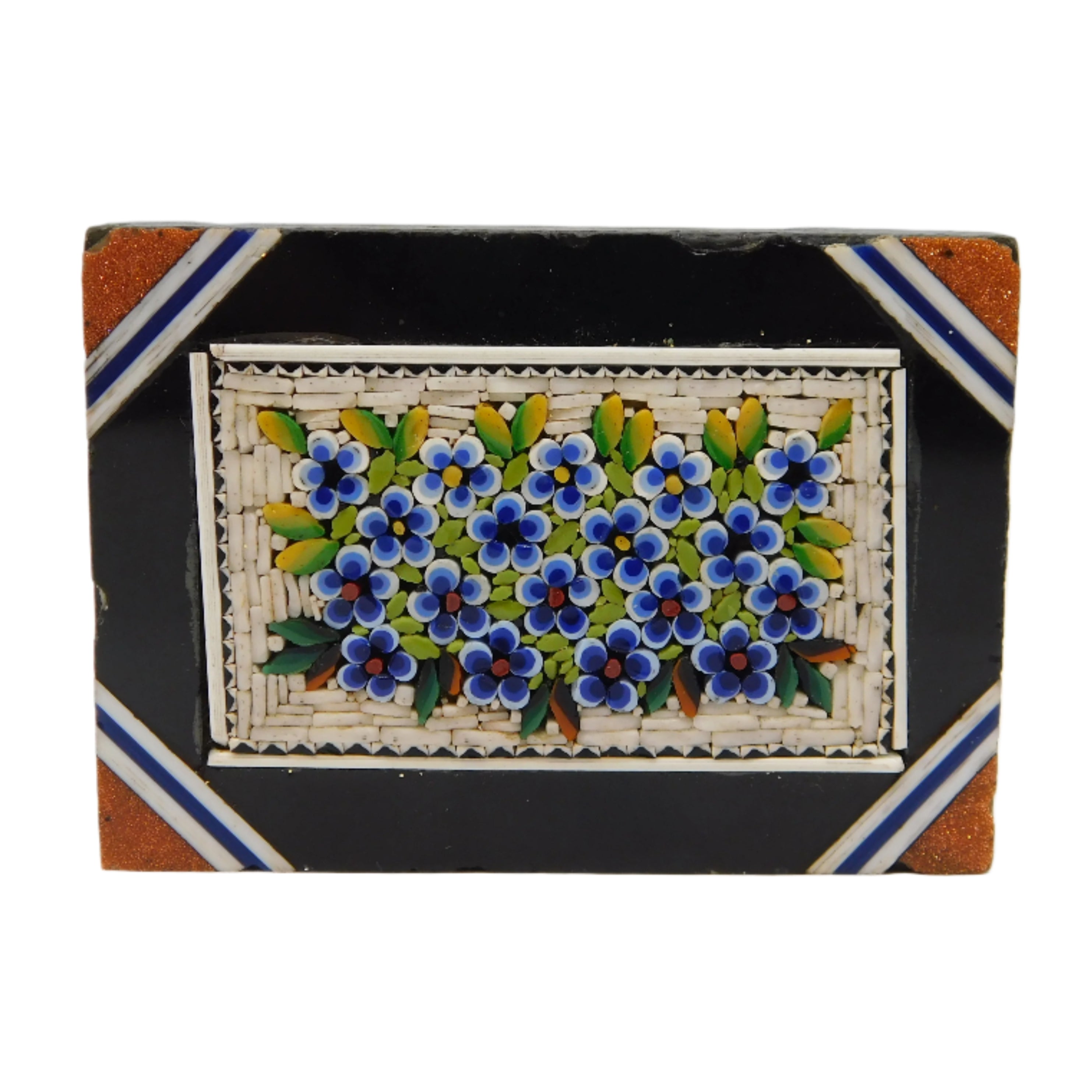 19th Century Black Marble Set Micro-Mosaic Floral Plaque Antique c1860