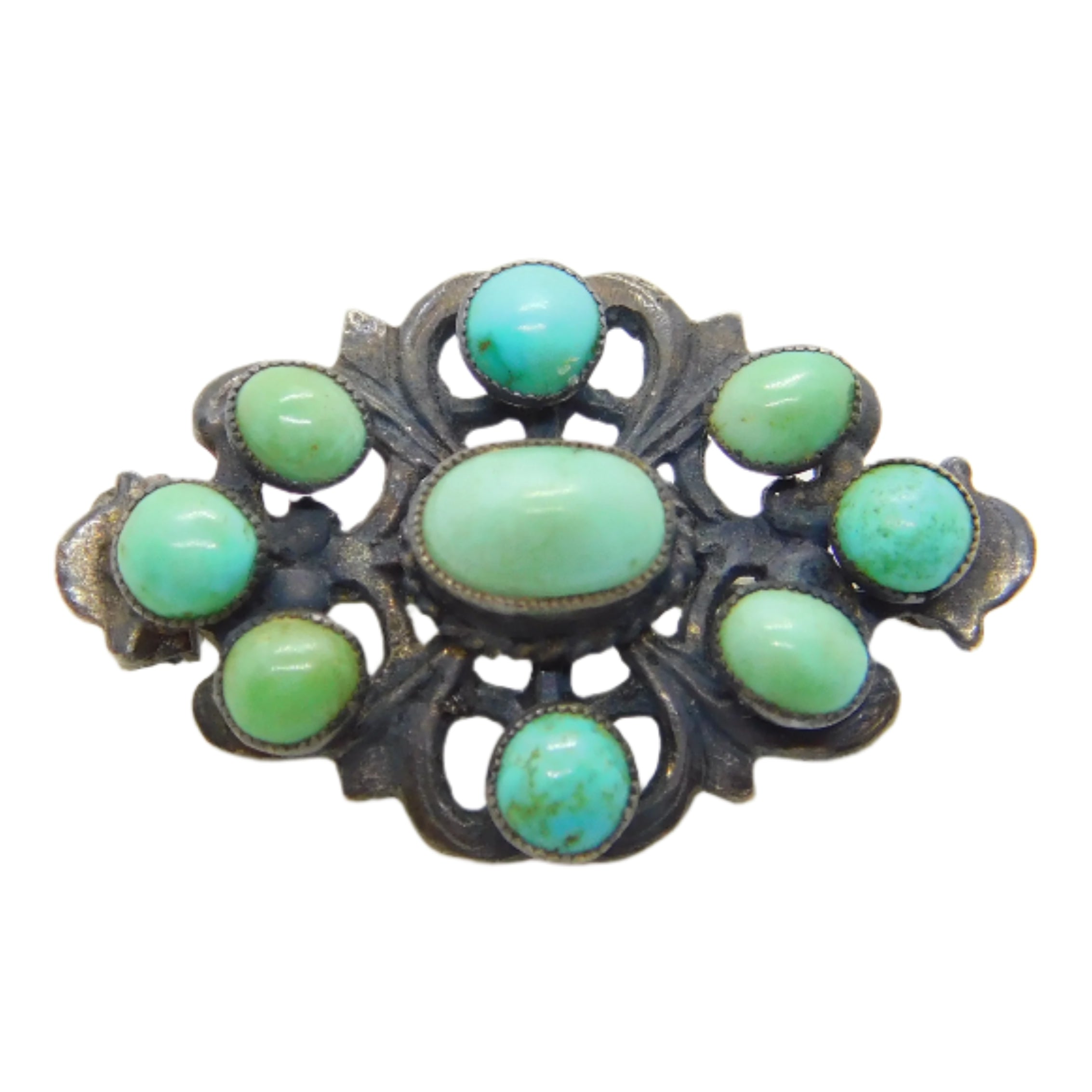 19th Century Austro-Hungarian Sterling Silver Cabochon Turquoise Brooch Antique c1860