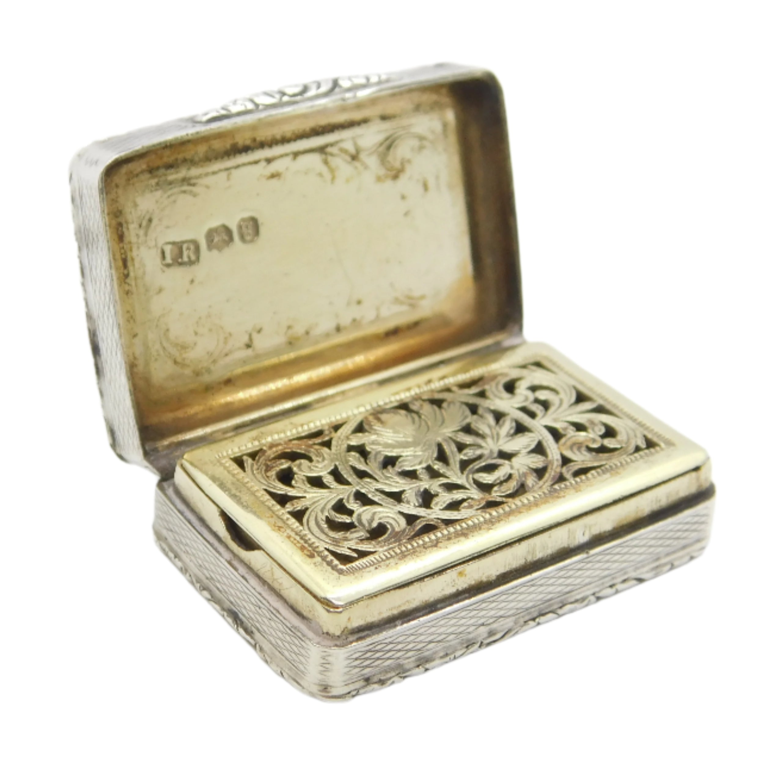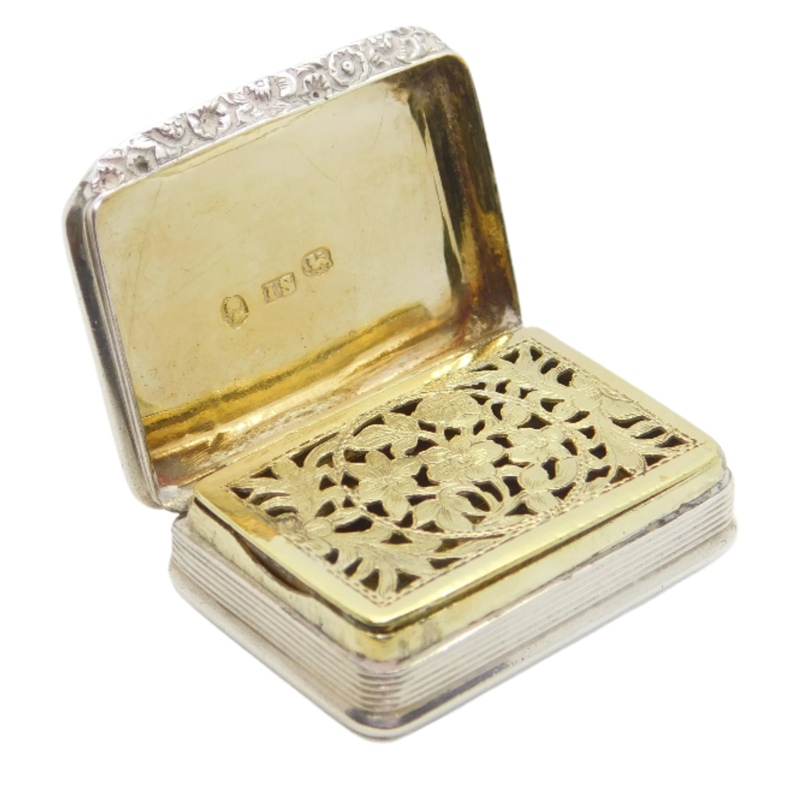 George III Sterling Silver Floral Pattern Vinaigrette Antique 1818 Birmingham