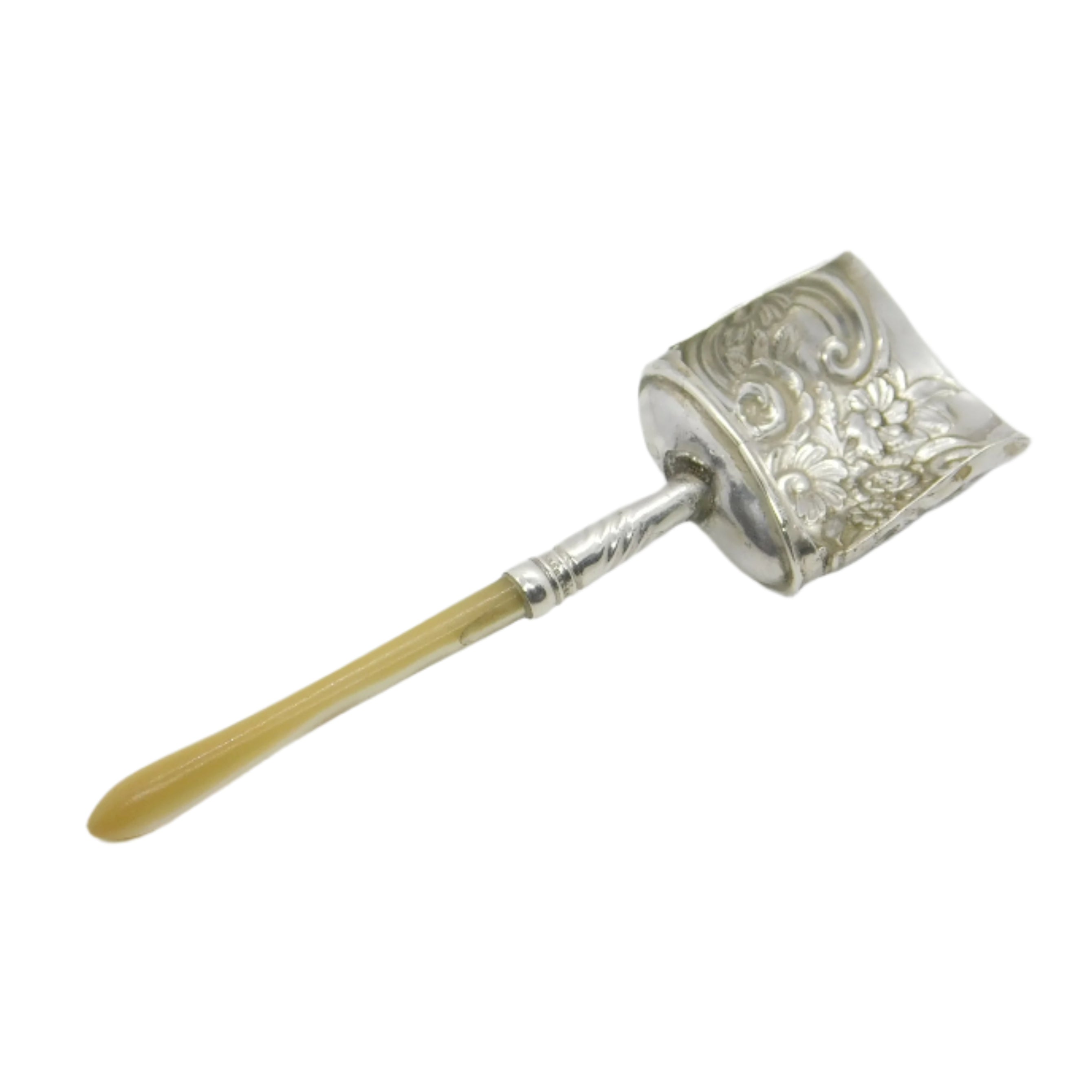 George III Sterling Silver Mother of Pearl Floral Tea Caddy Spoon Antique 1813 Birmingham