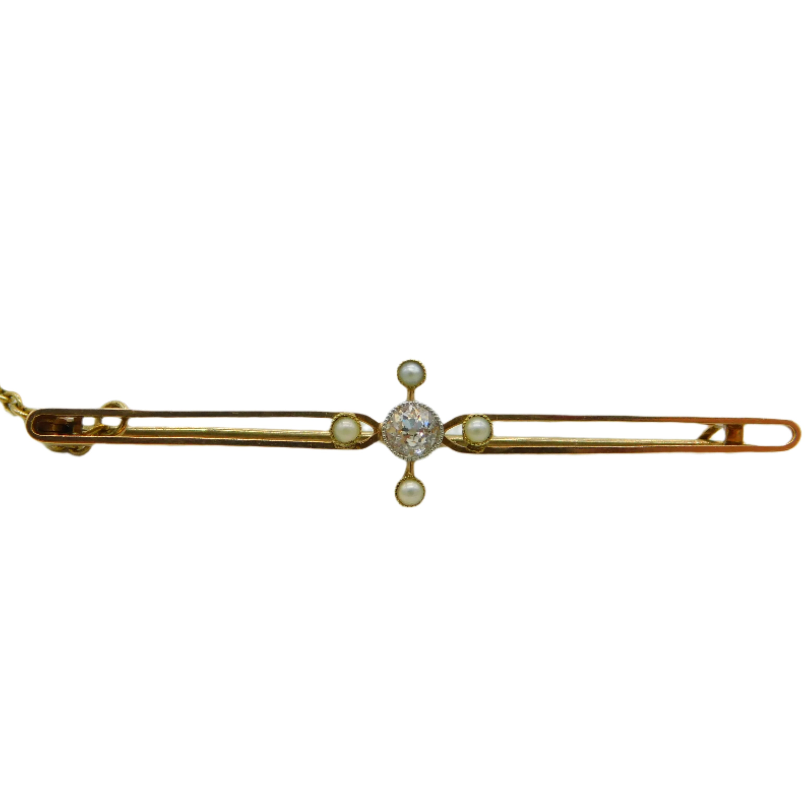 Edwardian 18ct Gold, 0.2ct Diamond & Seed Pearl Floral Brooch Antique c1910
