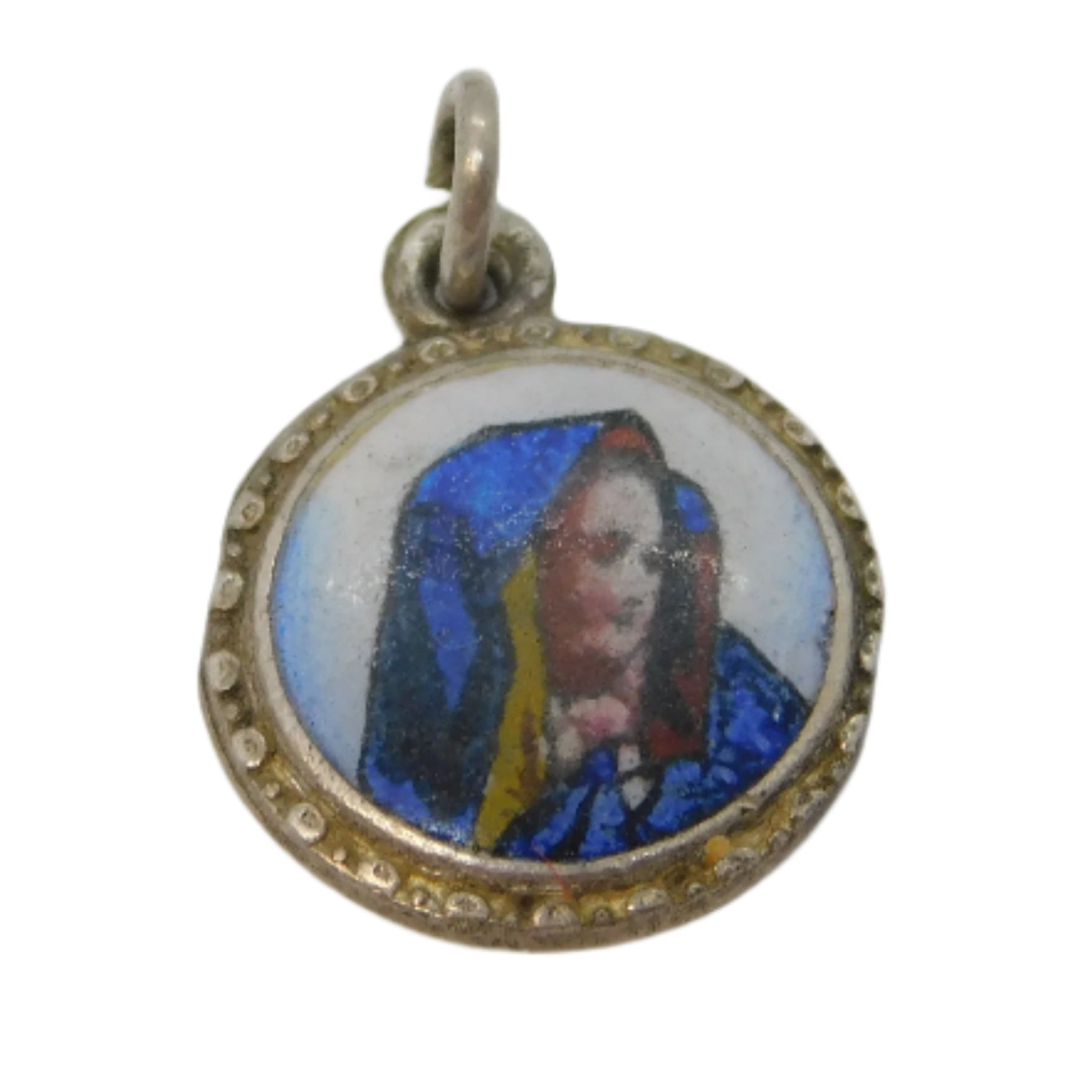 19th Century German .900 Silver Enamel 'Gott Schütze Dich' Religious Charm c1880