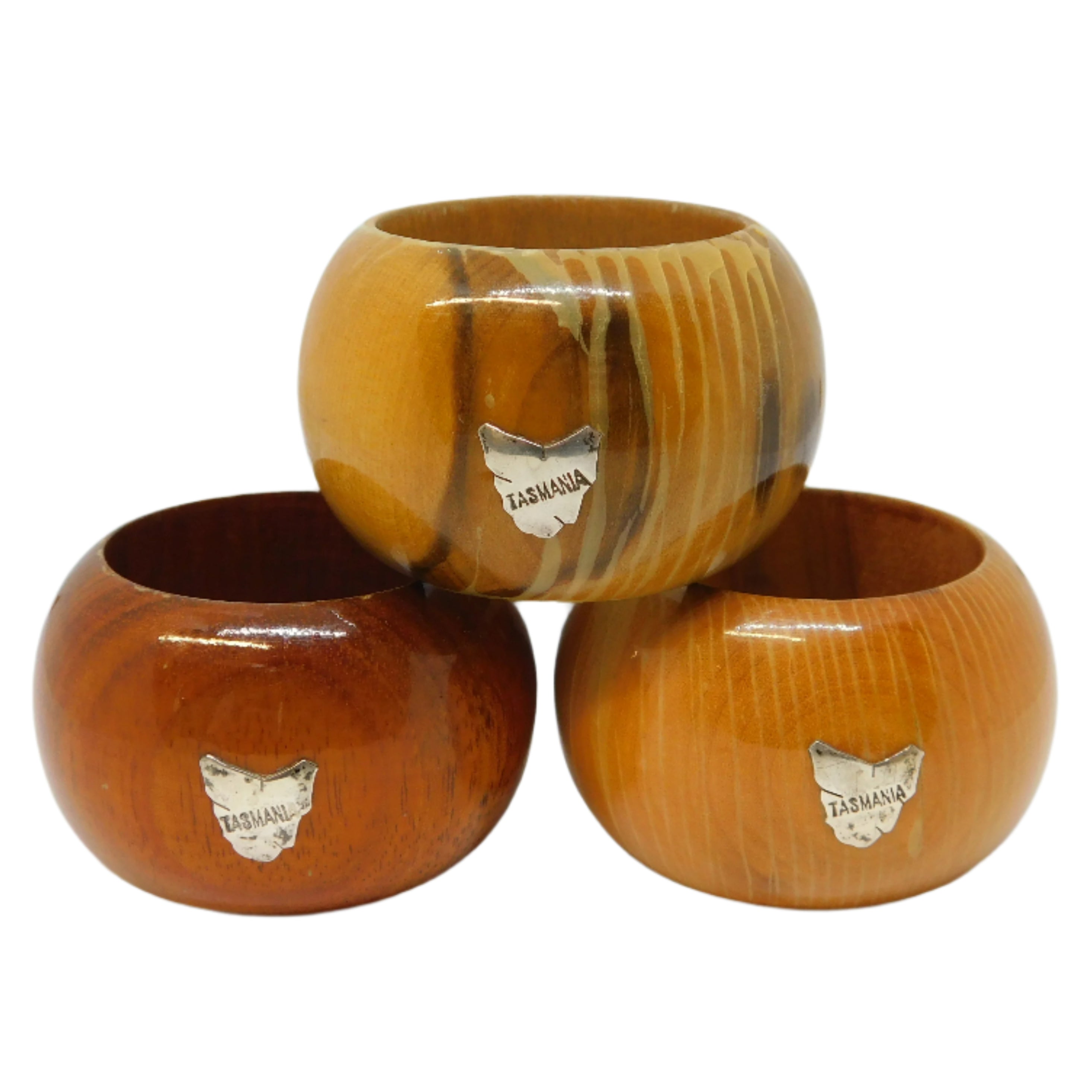 20th Century Australian Treen & Sterling Silver Tasmania Napkin Rings Set c1930