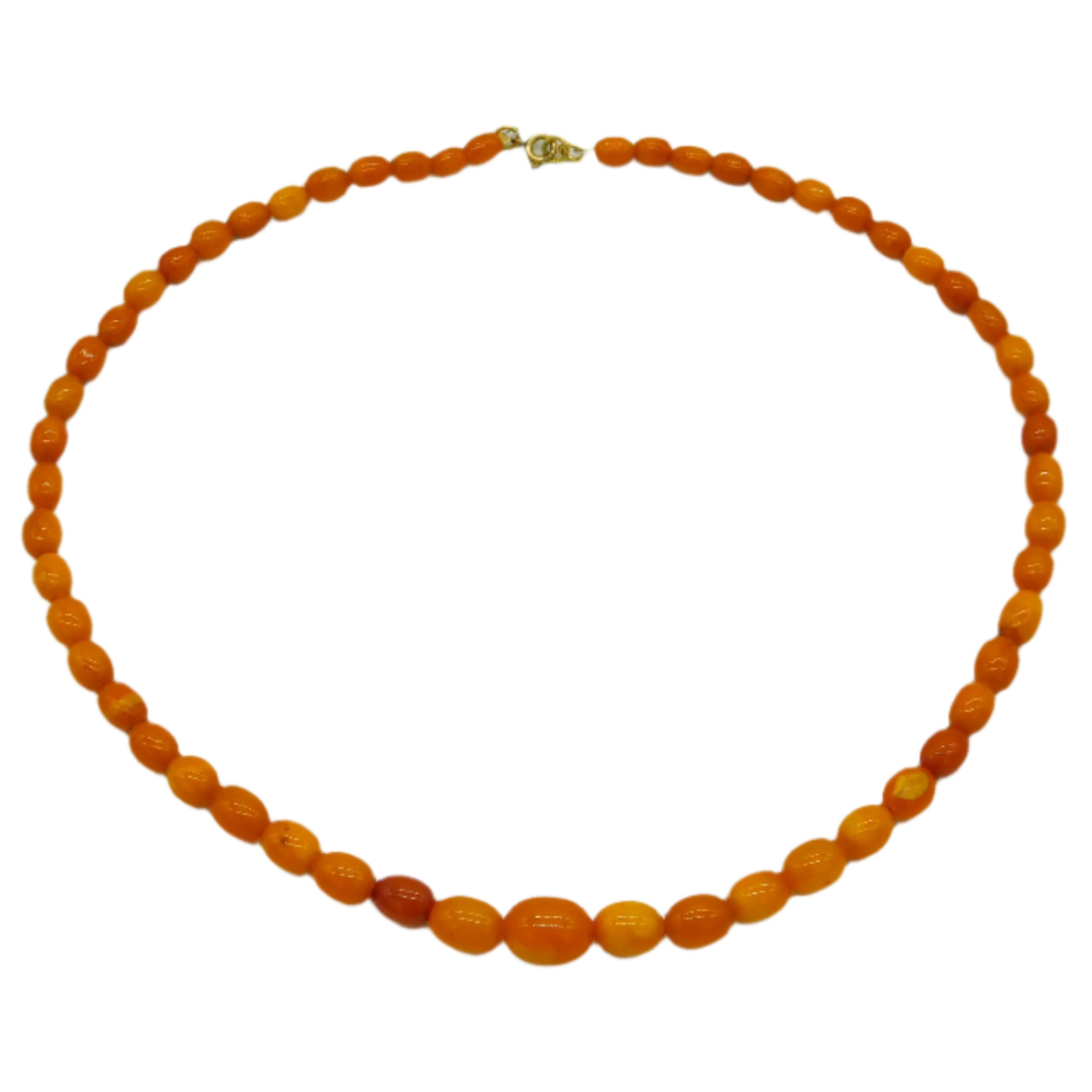 19th Century 9ct Yellow Gold Clasp Butterscotch Amber Graduating Necklace Antique c1860