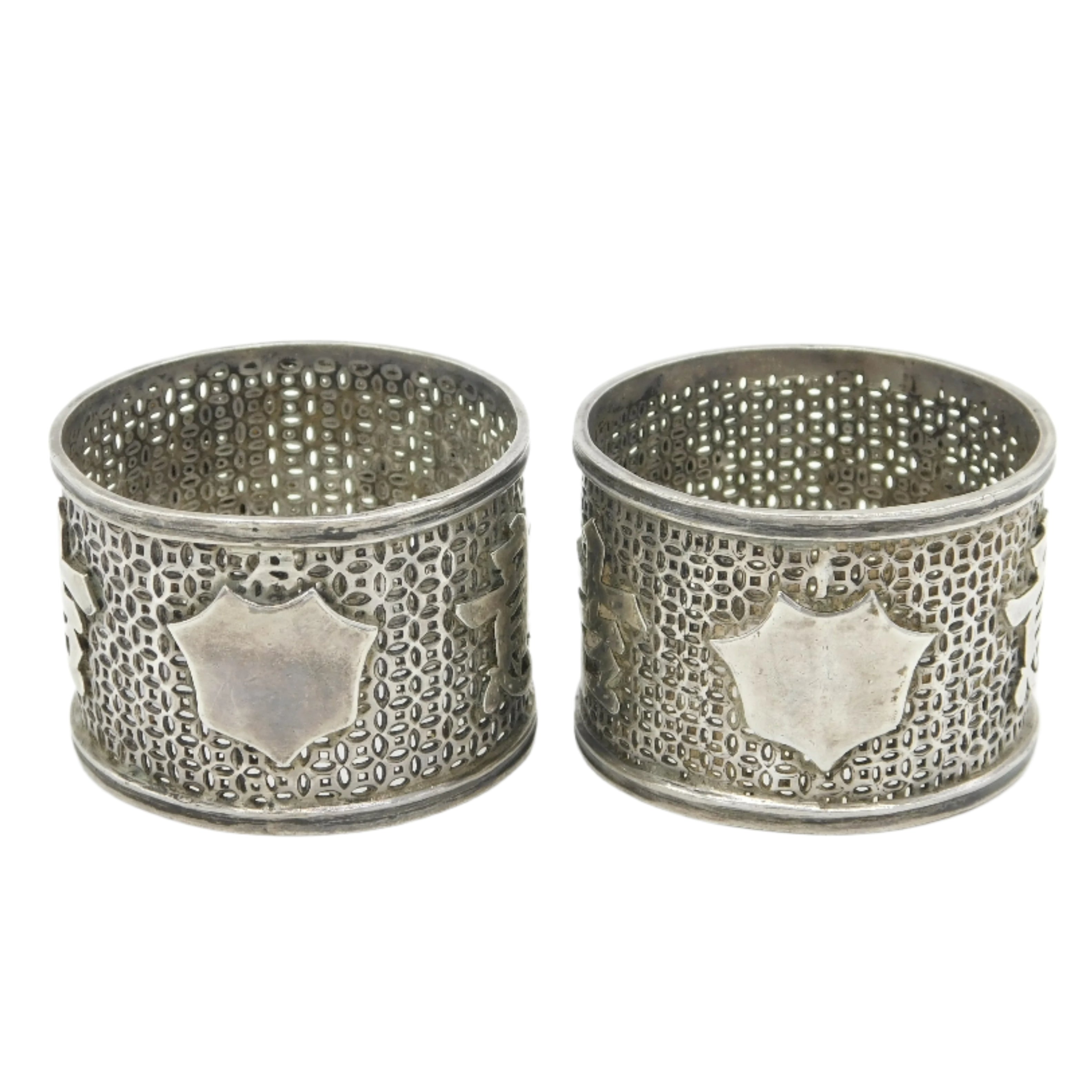 19th Century Pair of Chinese Sterling Silver Character Napkin Rings Antique c1880