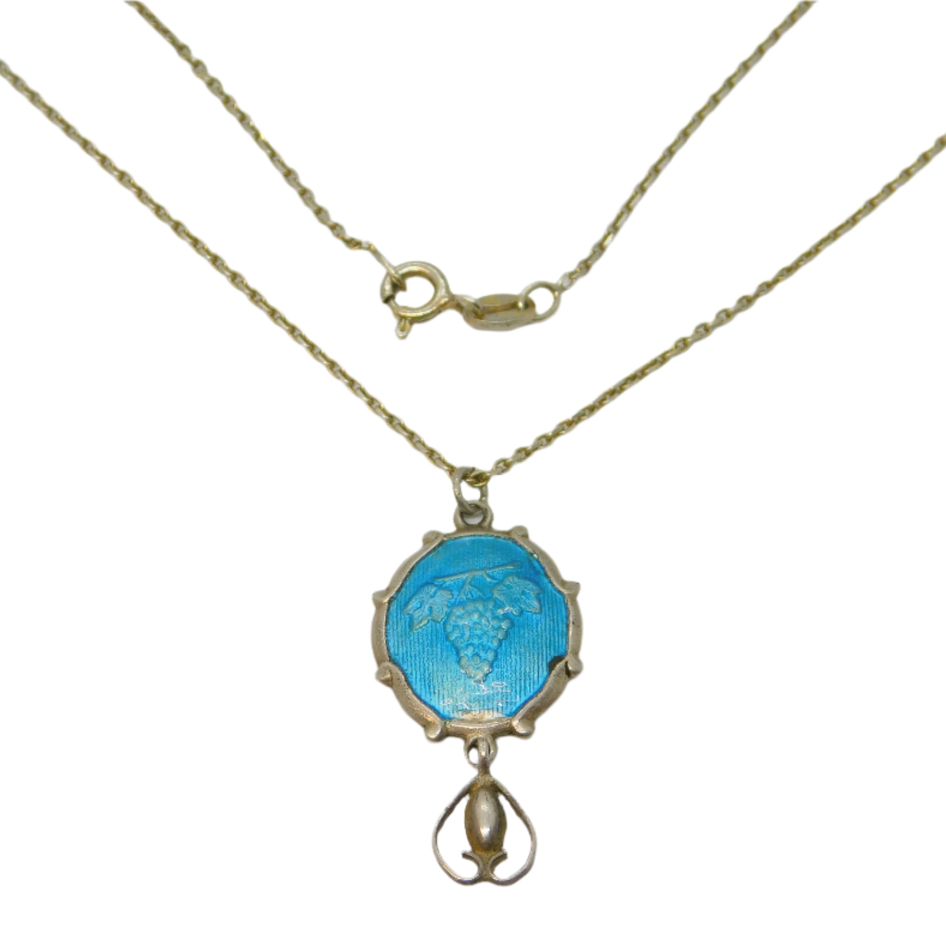 Charles Horner Sterling Silver Blue Enamel Drop Pendant Necklace Antique c1920