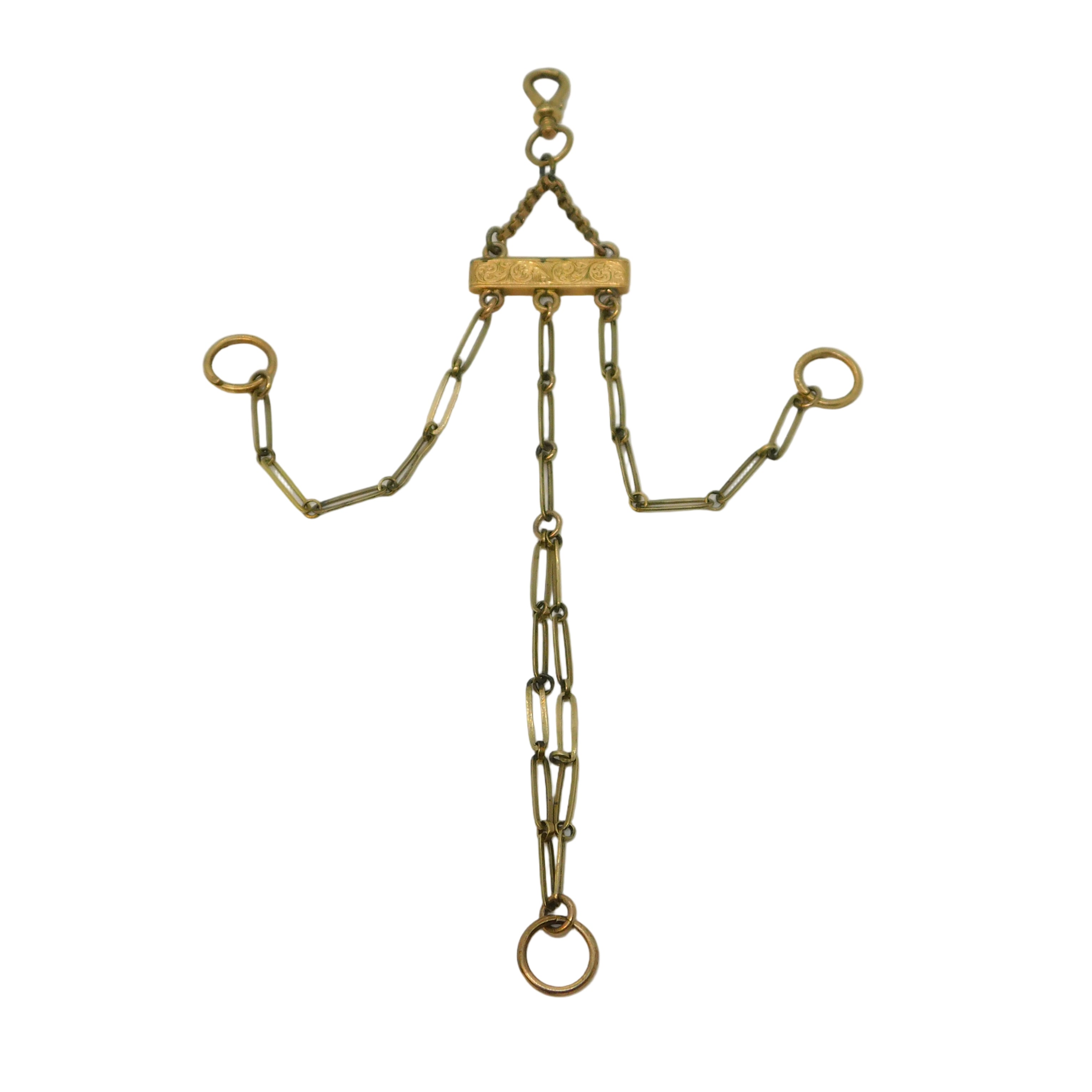 19th Century 14ct Gold & Silver Gilt Floral Three-Part Chatelaine Antique c1880