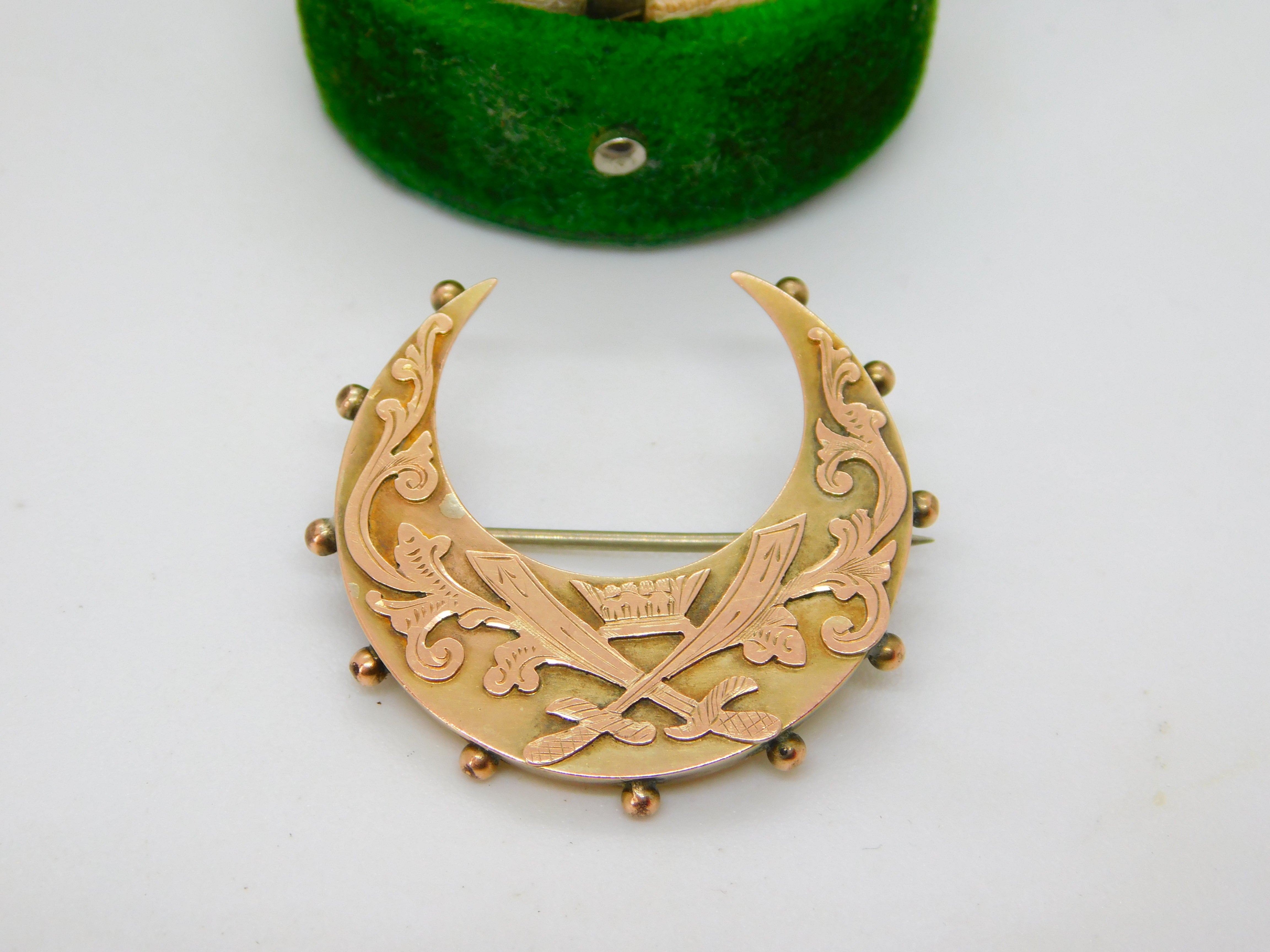 Victorian 9ct Yellow Gold Crescent Moon Sweetheart Brooch Antique c1890