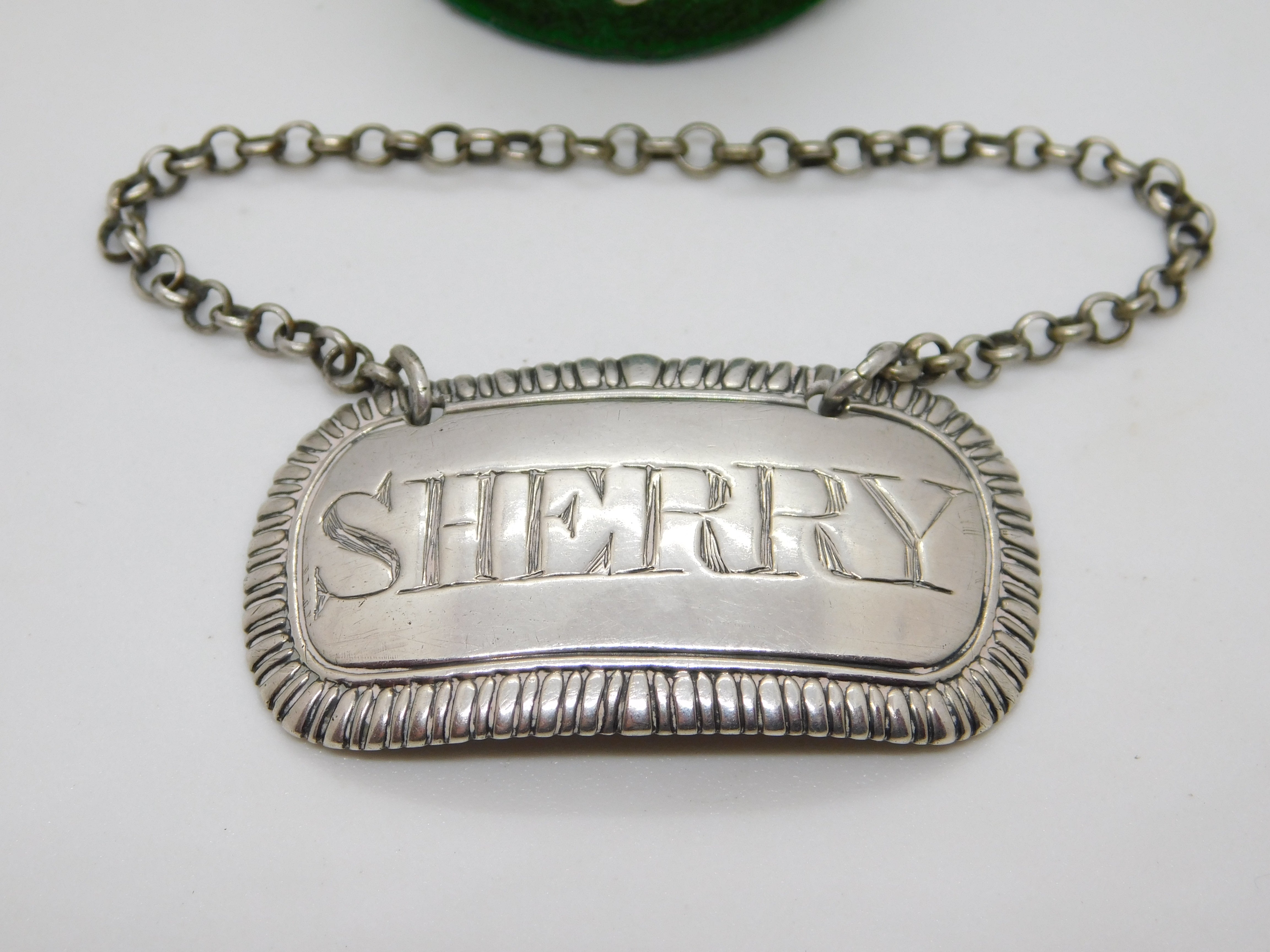 George III Sterling Silver Bright Cut Sherry Decanter Label Antique 1810 London