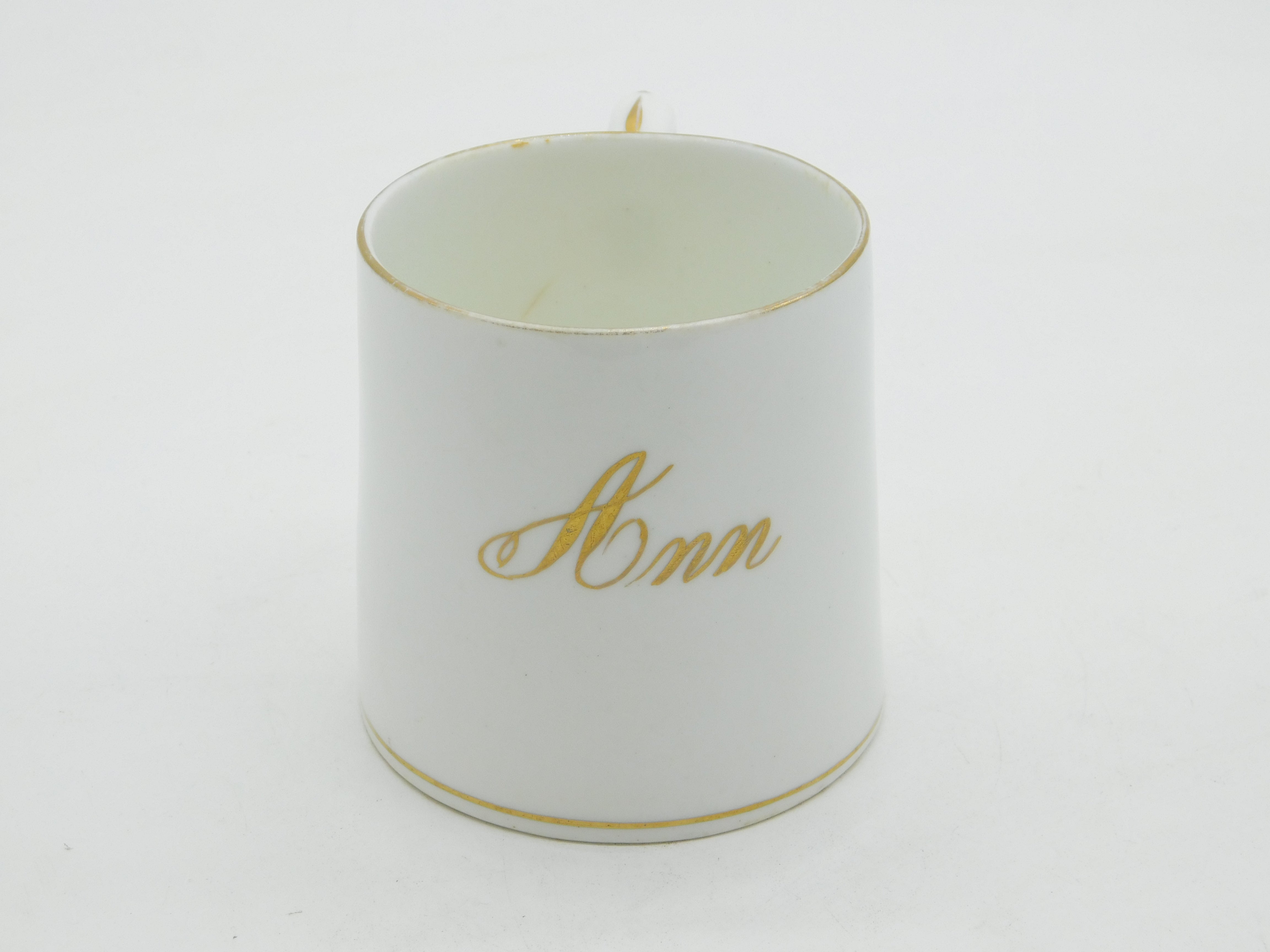 19th Century English Pearlware Gilded 'Ann' Christening Mug Antique c1850