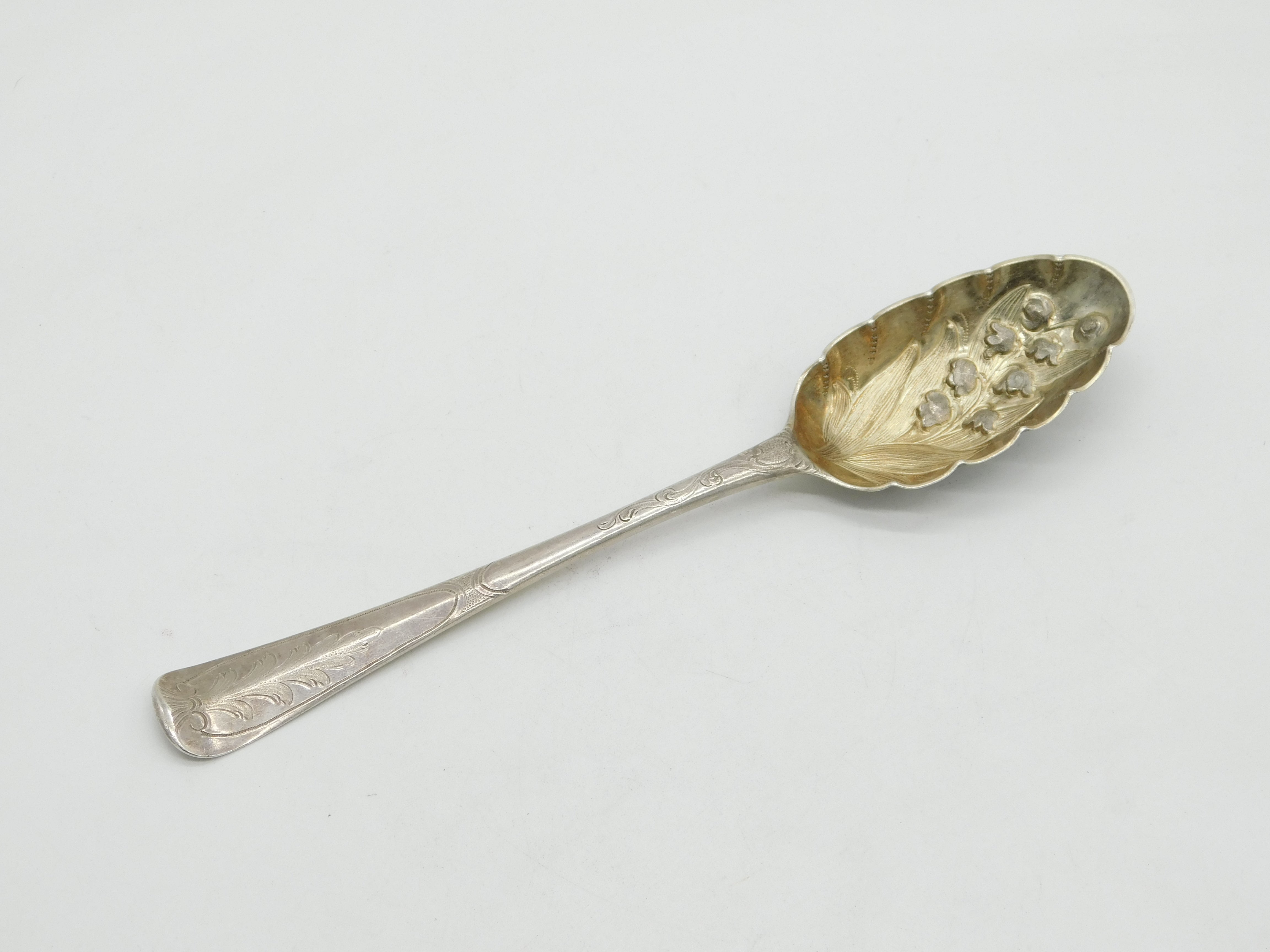 George III Irish Sterling Silver Berry Pattern Dessert Spoon 1761 Dublin Antique