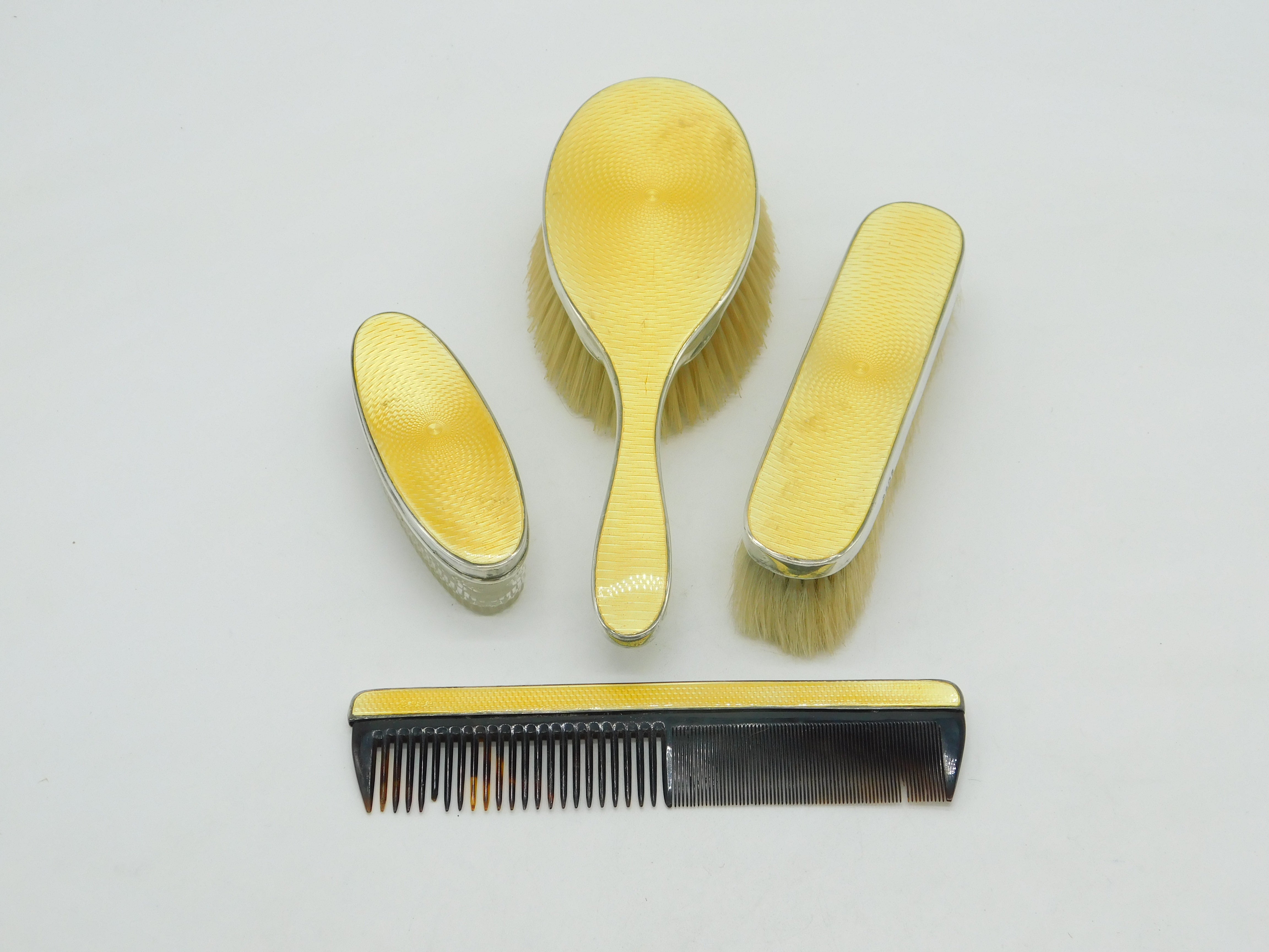 Sterling Silver Yellow Guilloche Enamel Four Piece Vanity Set 1924 Antique Deco