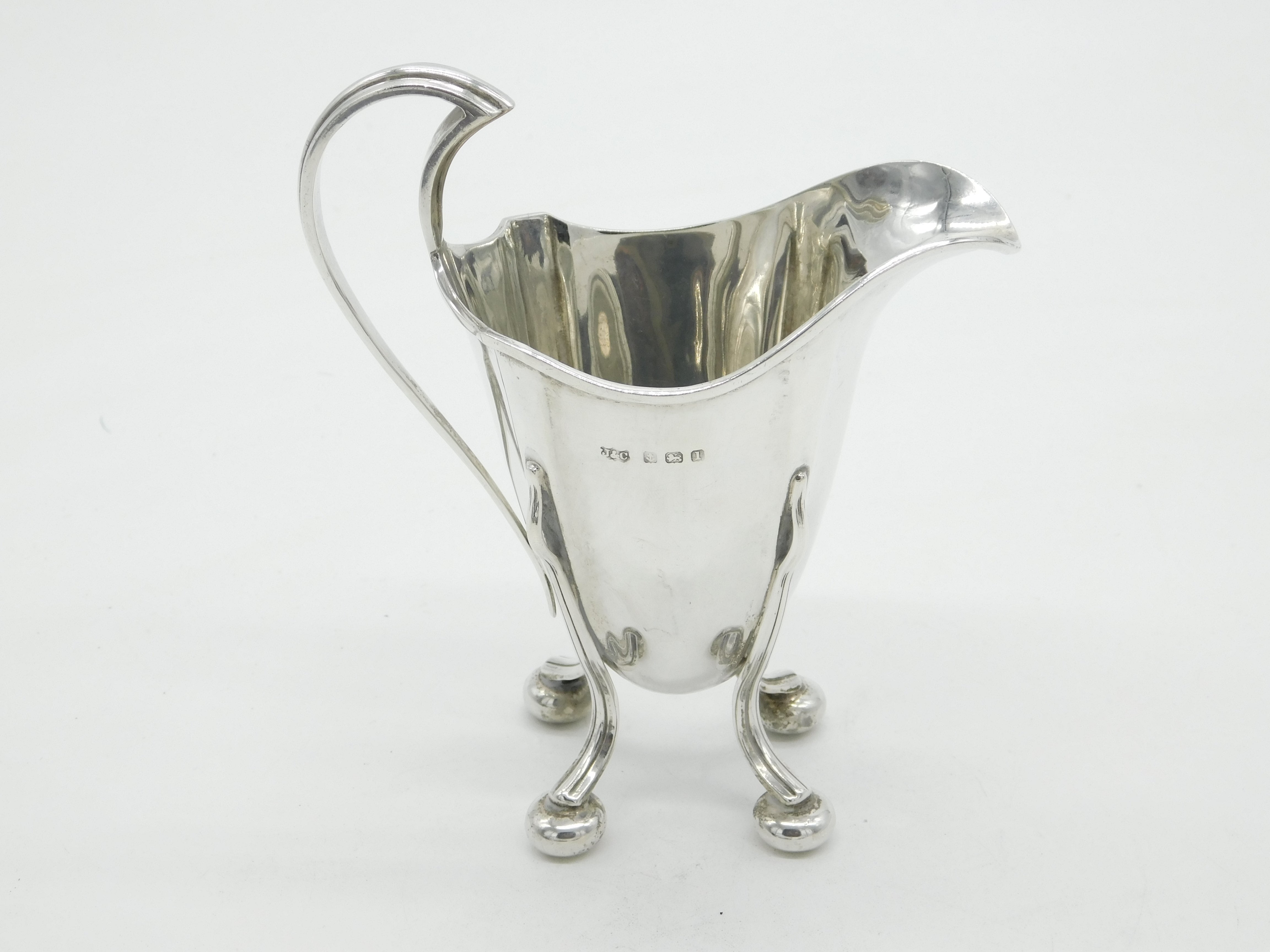 Edwardian Sterling Silver Fluted Cream Jug on Ball Feet Antique 1910 Birmingham