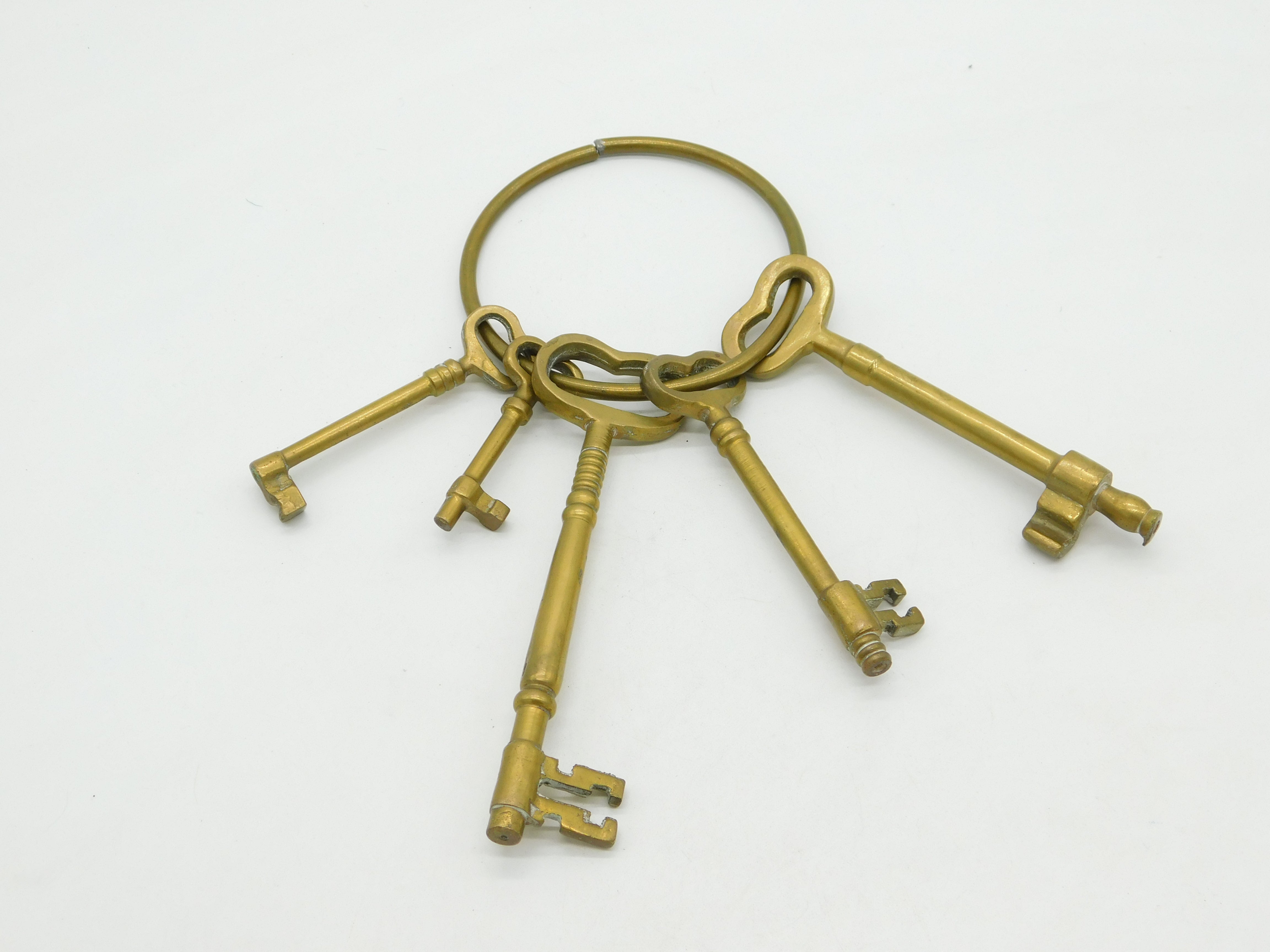 Victorian Set of Large Cast Brass Jailers Keys on Ring Antique c1880