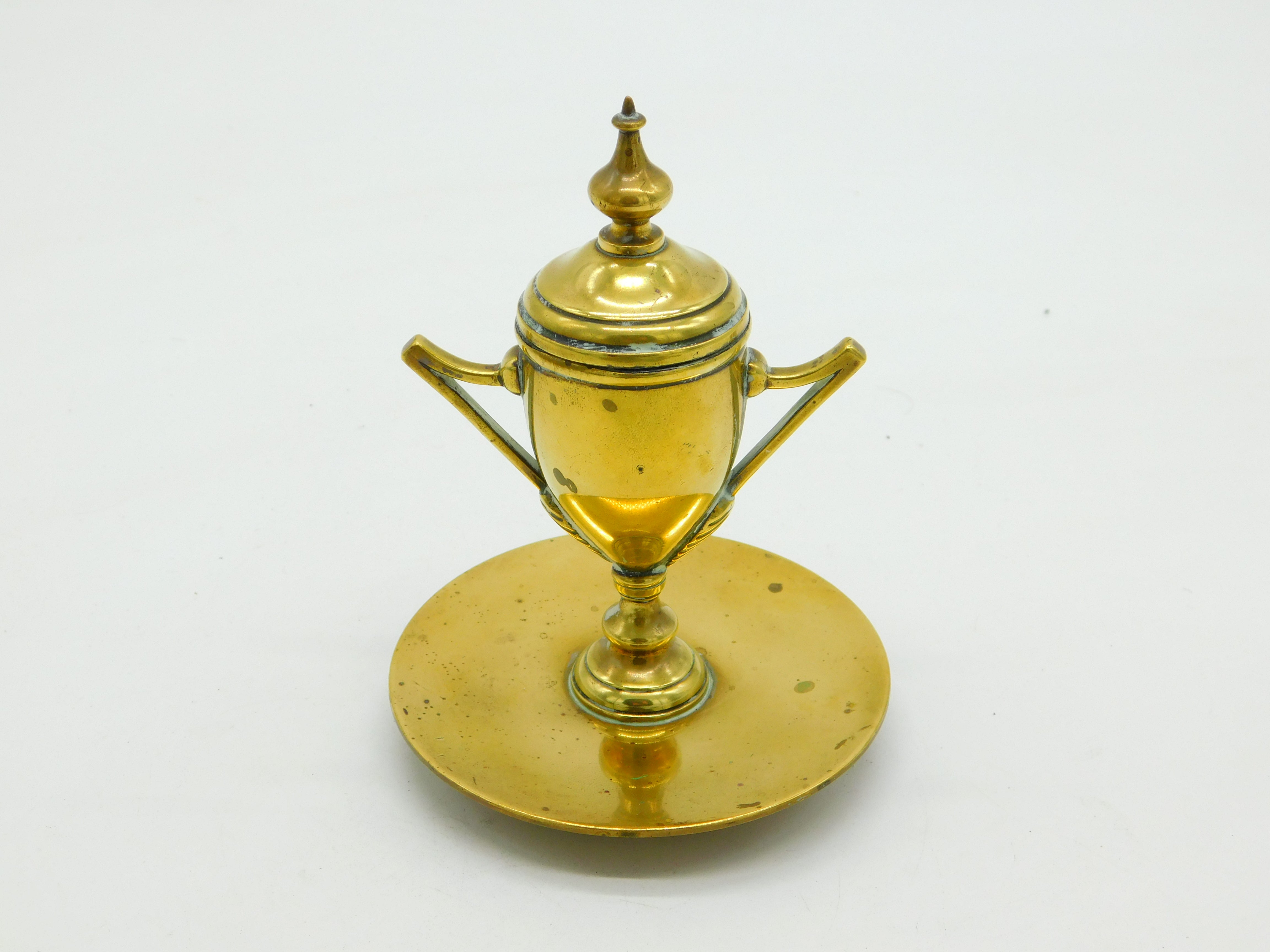 Regency Period Cast Brass Classical Urn Desktop Inkwell Antique c1830