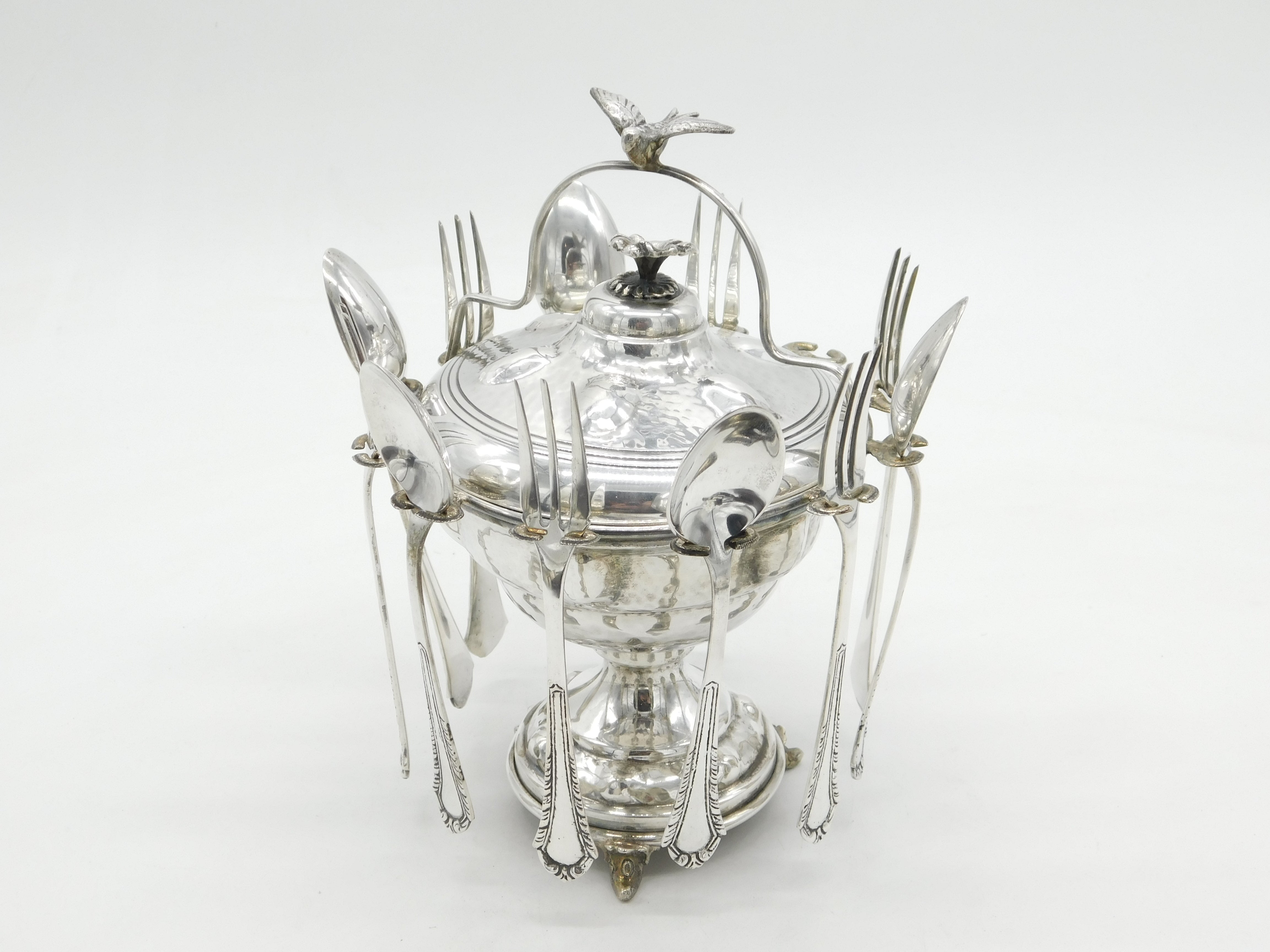 European .800 Silver Planished Caviar Sharing Set Antique c1920 Art Deco