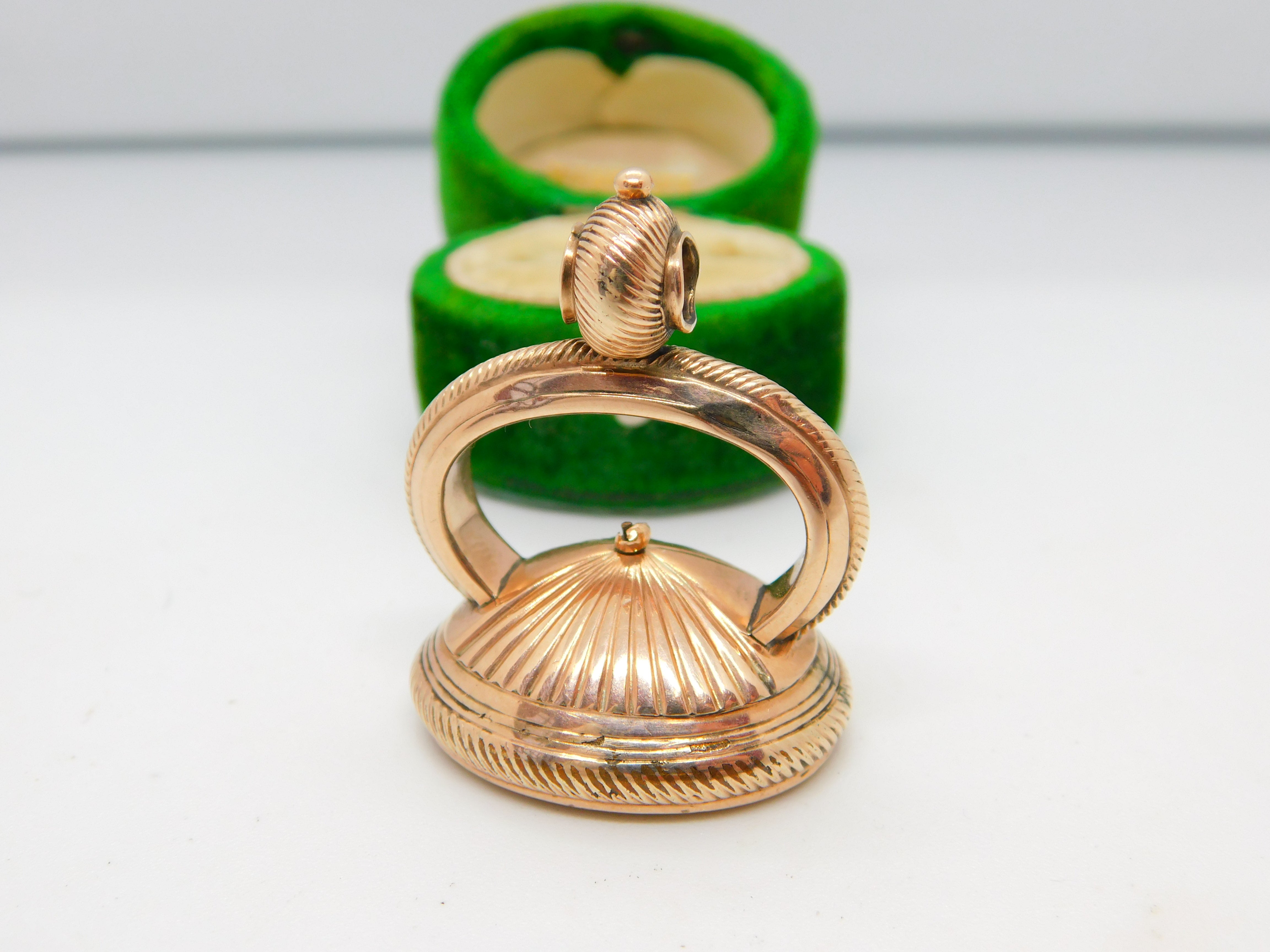 Georgian 9ct Rose Gold Chalcedony Agate Lion 'AM' Heraldic Crest Fob Antique