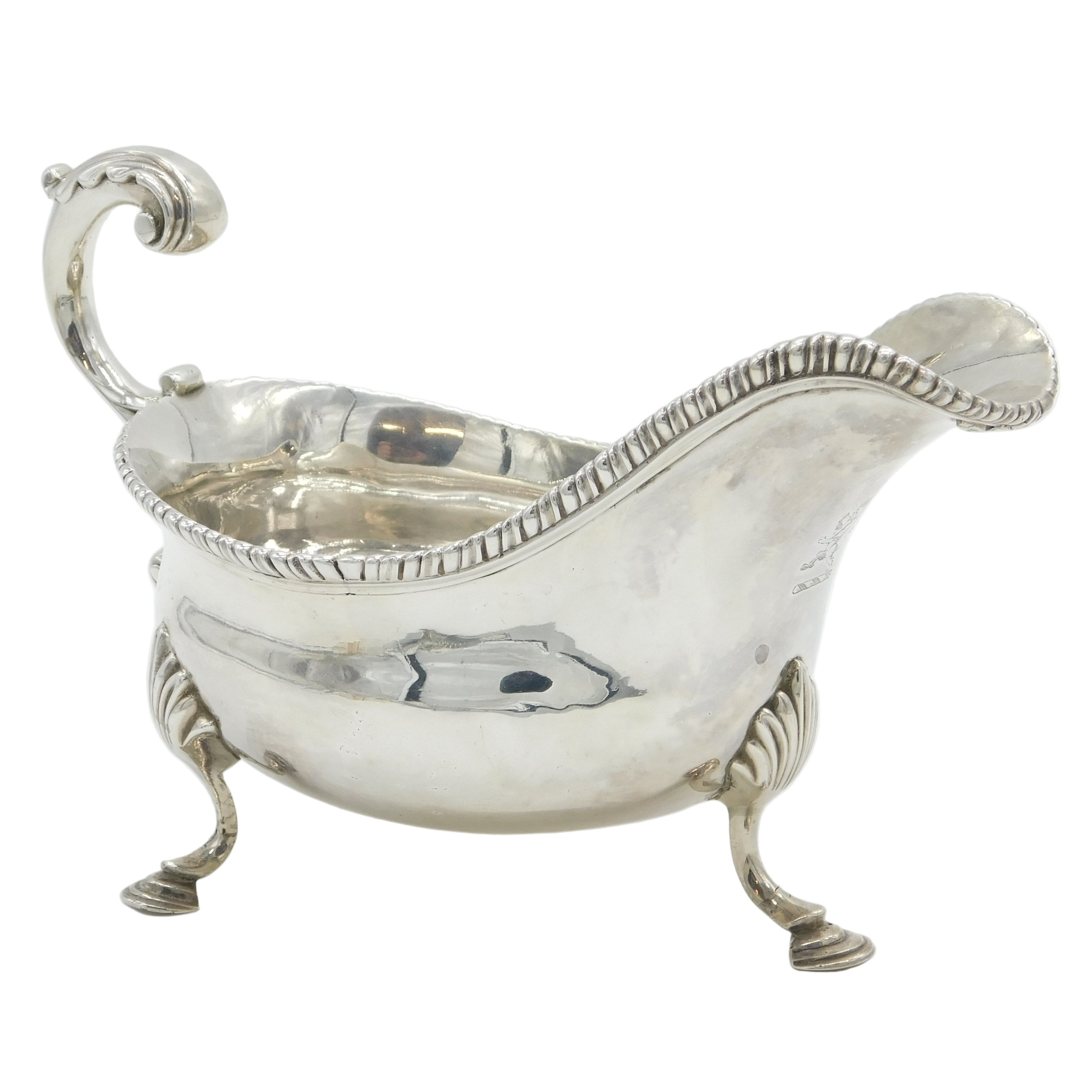 George III Sterling Silver Scrolled Lion Crest Sauce Boat Antique 1771 London