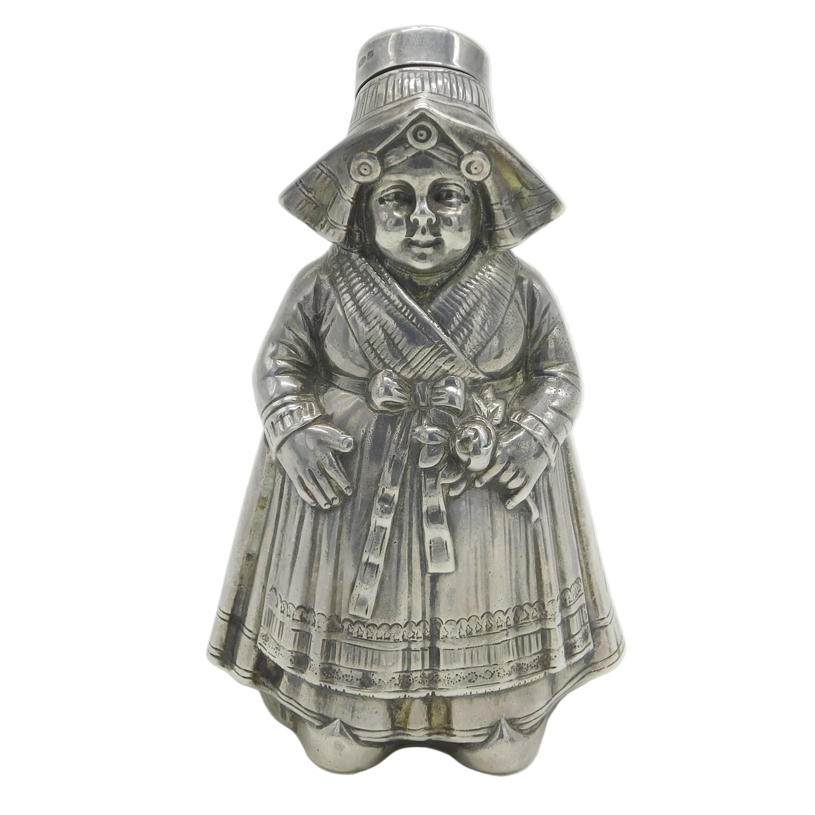 Edwardian Large Sterling Silver Dutch Lady Caster or Shaker Antique 1908 Chester
