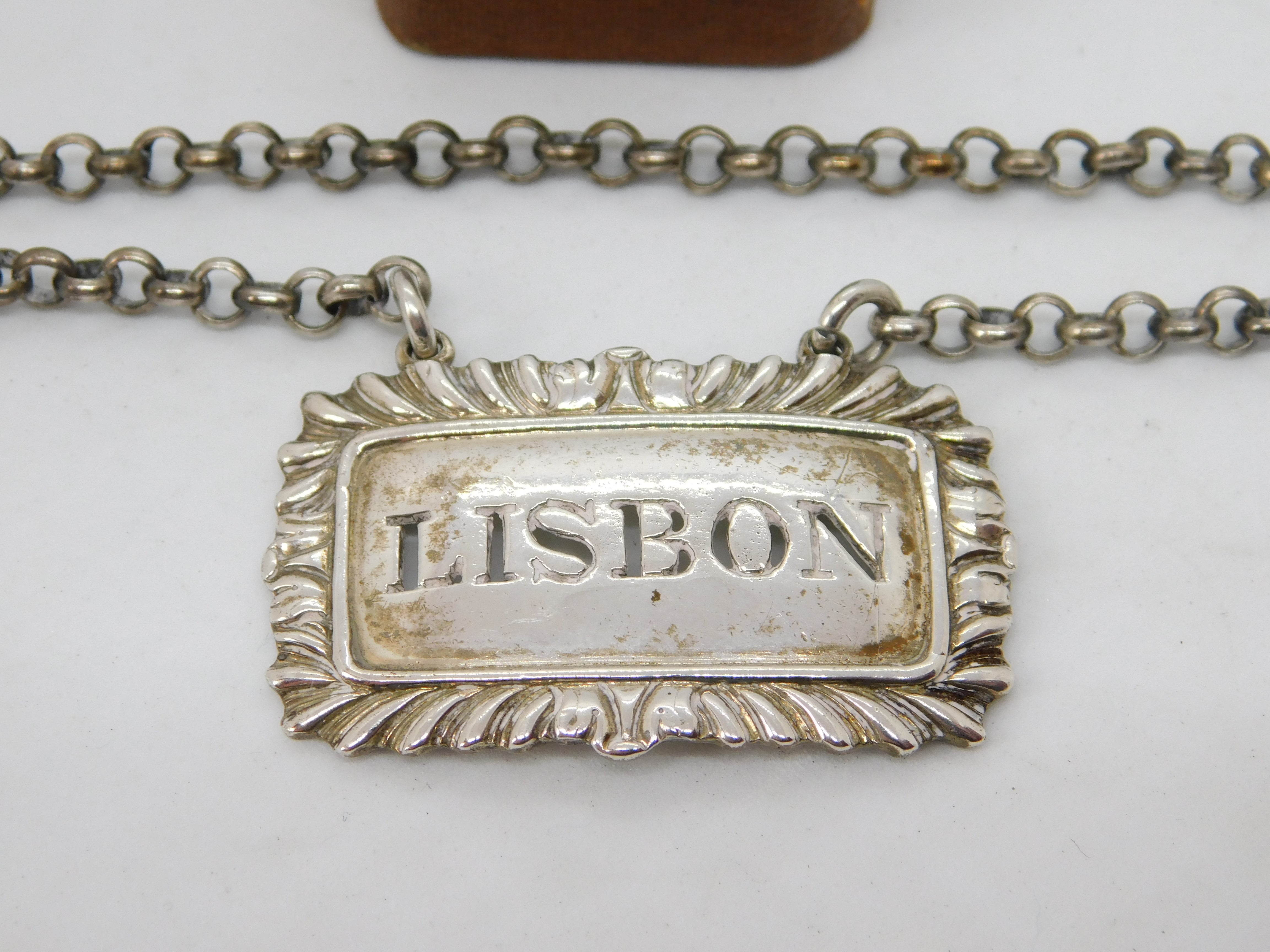 Georgian Sterling Silver Floral 'Lisbon' Wine Decanter Label c1815 Antique
