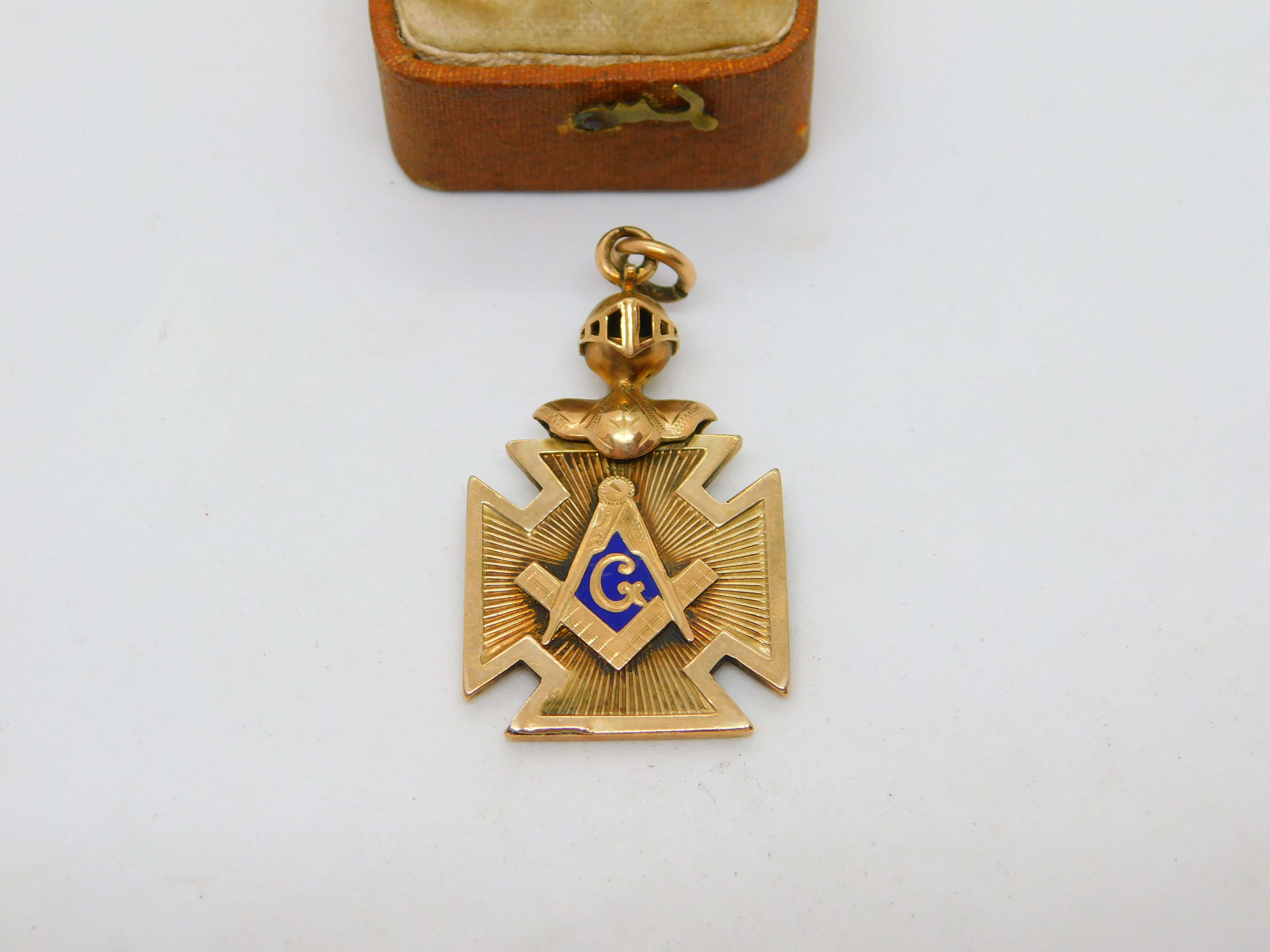 Victorian 10ct Gold, Blue Enamel Knight's Helmet Masonic Fob c1900 Antique