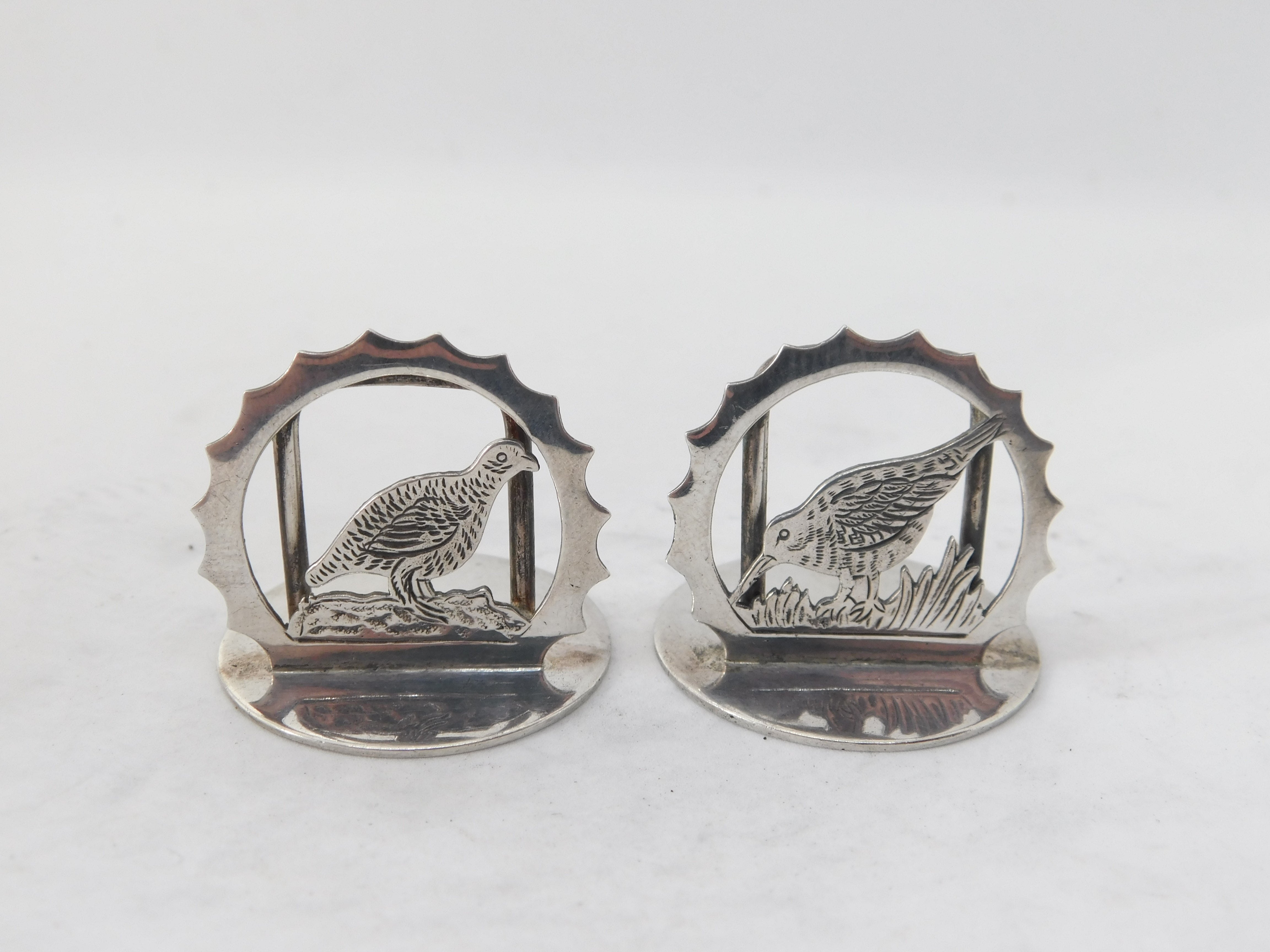 Pair Sterling Silver Shooting Interest Menu Holders 1985 London Vintage