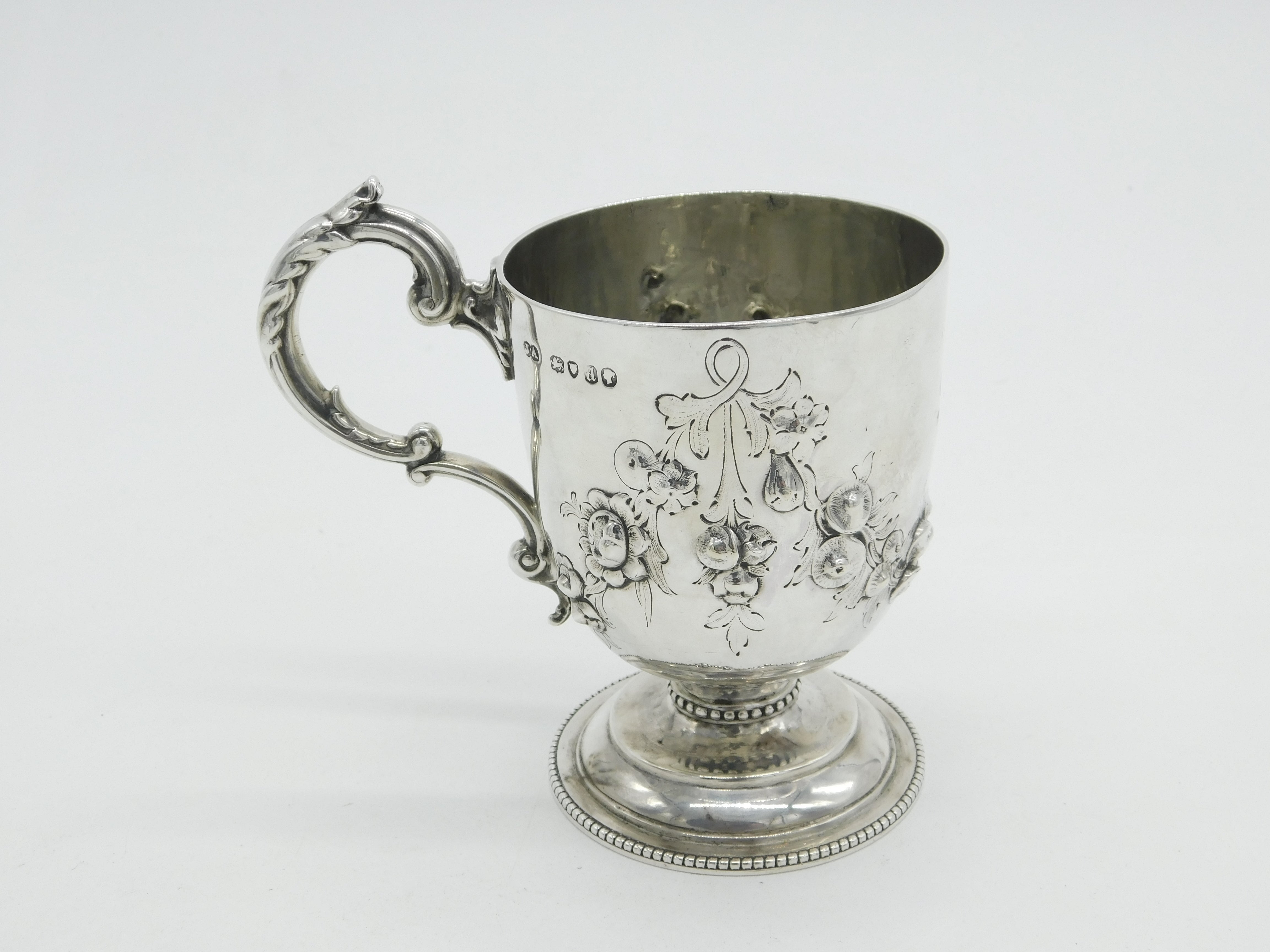 Victorian Sterling Silver Floral Christening Mug Tankard 1859 Antique London