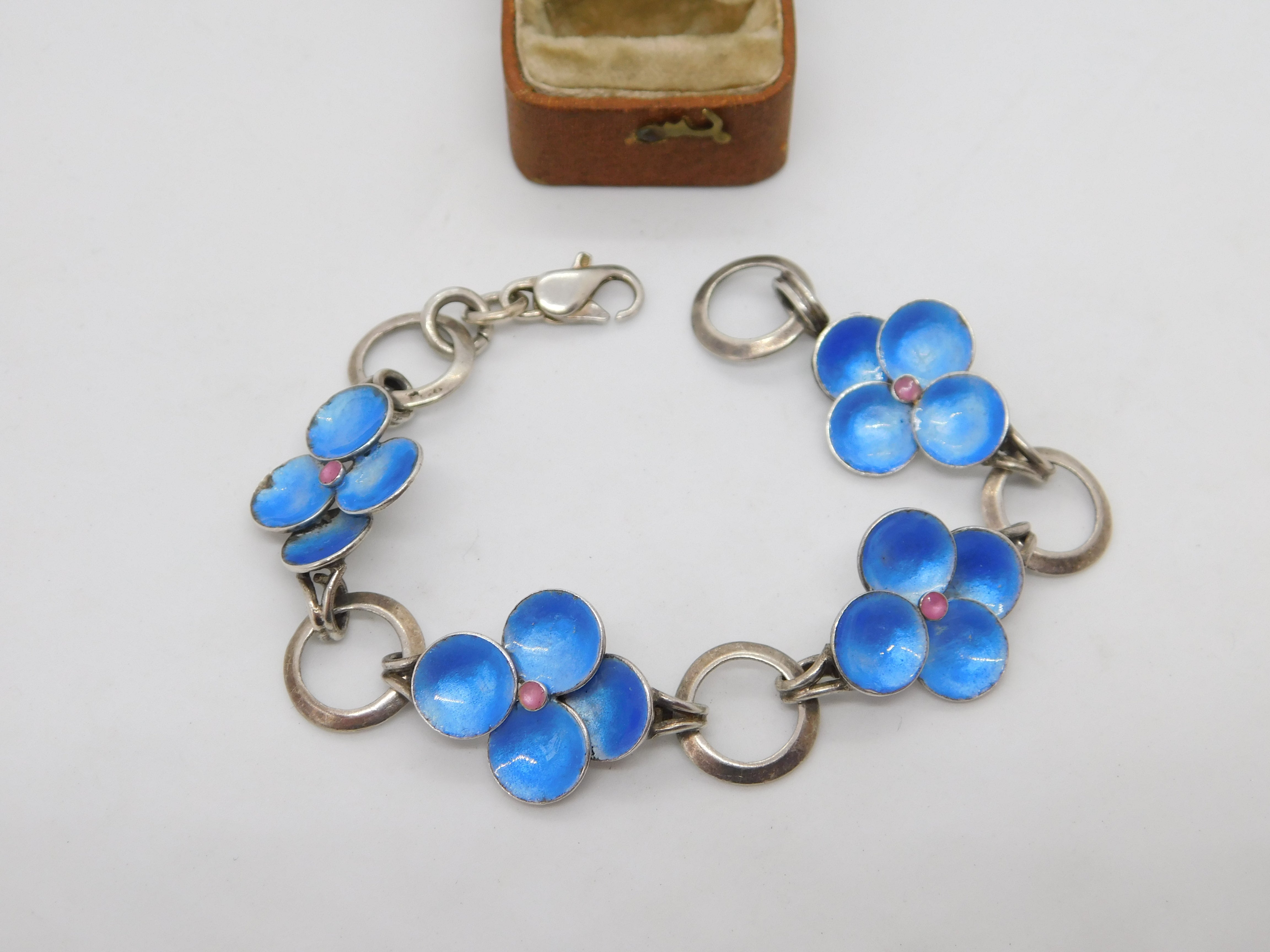 Bernard Instone Sterling Silver Blue Enamel Floral Bracelet Antique c1930 Deco