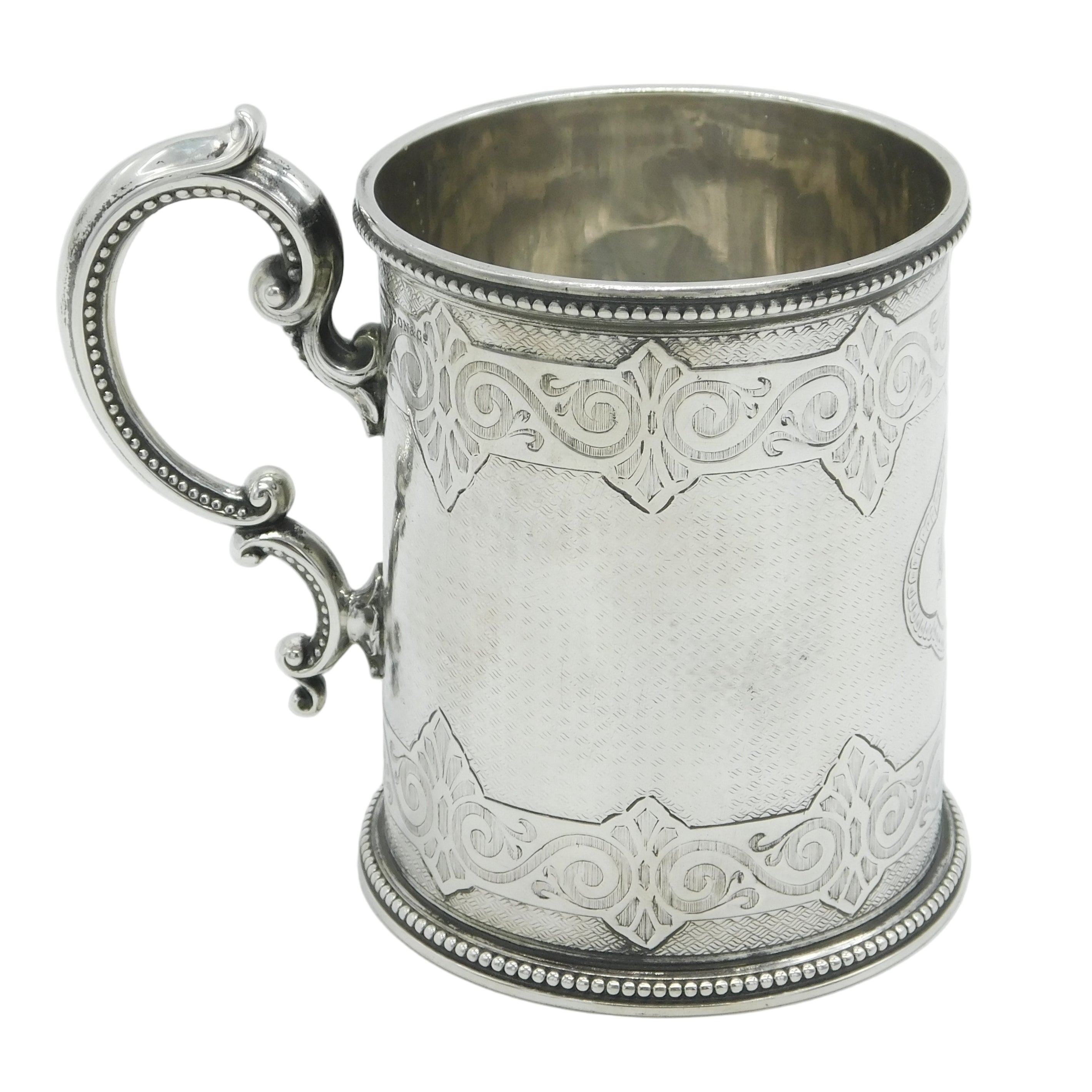 Victorian Sterling Silver Floral Pattern Christening Mug Antique 1866 London