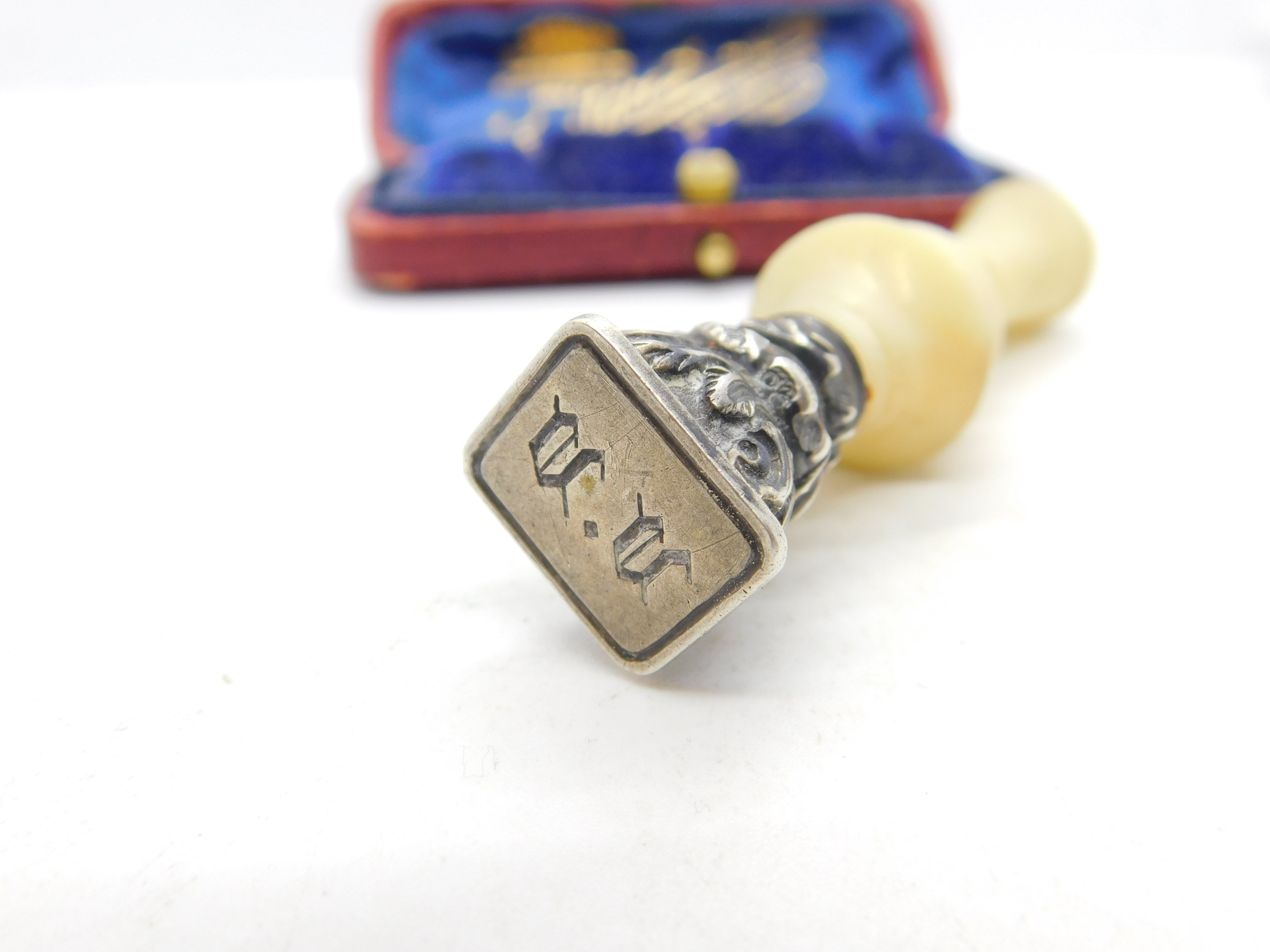 Victorian Sterling Silver Carved Mother of Pearl 'V.V' Initial Desk Seal c1840
