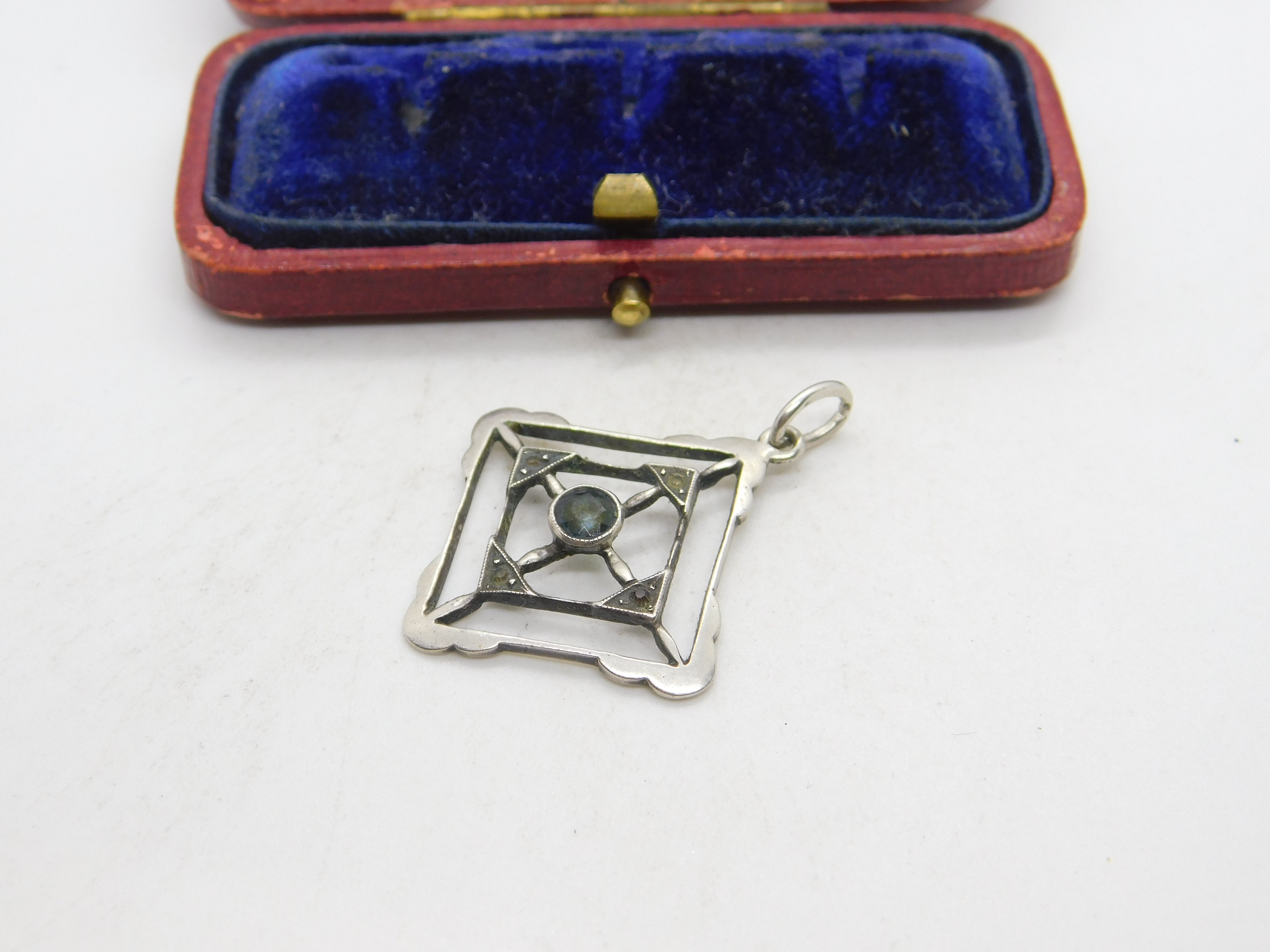 Edwardian Sterling Silver, Topaz & Spinel Set Lavalier Drop Pendant c1910