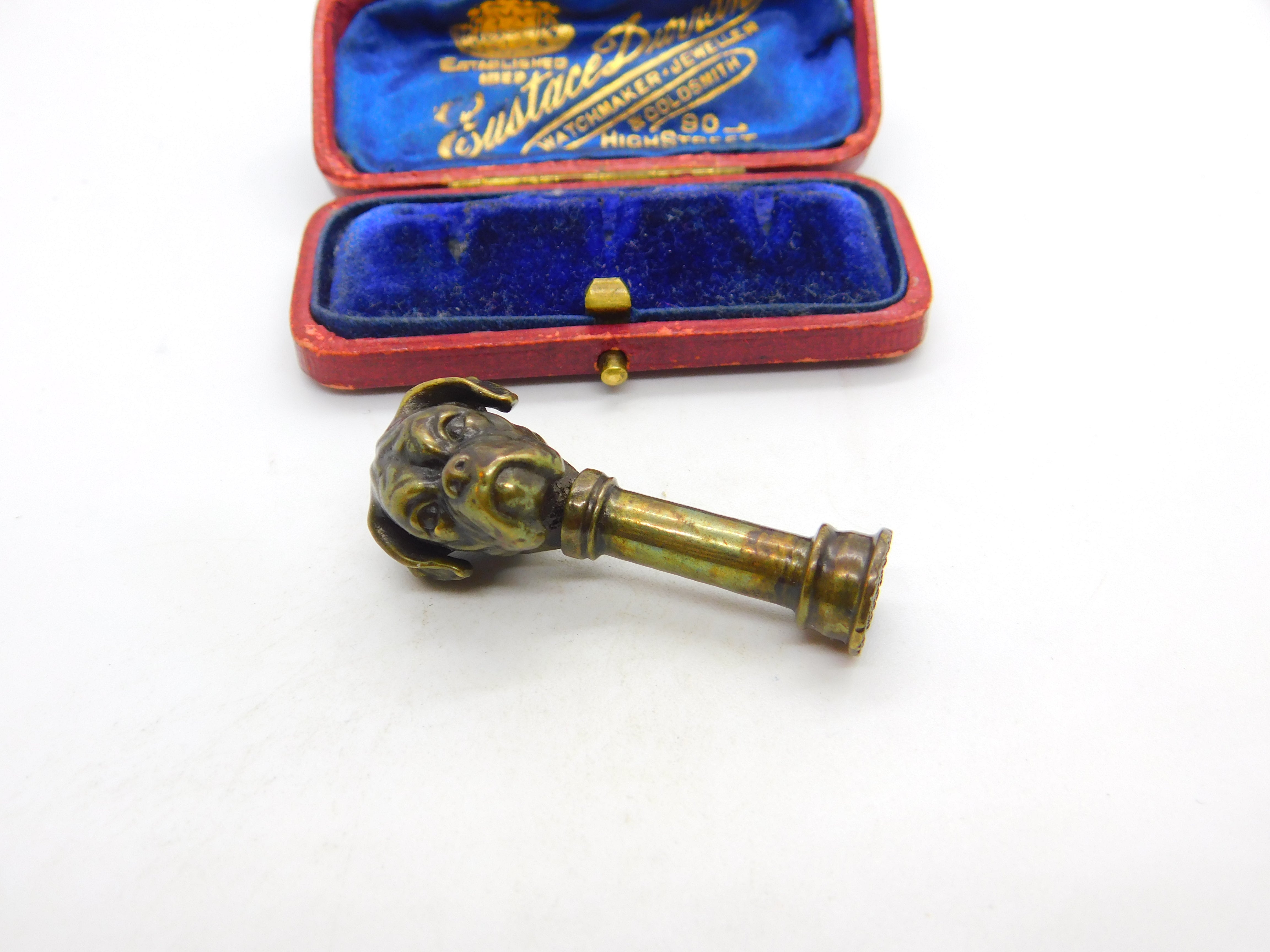 Victorian Cast Bronze Boxer Bulldog Column Desk Seal Stamp Antique c1890