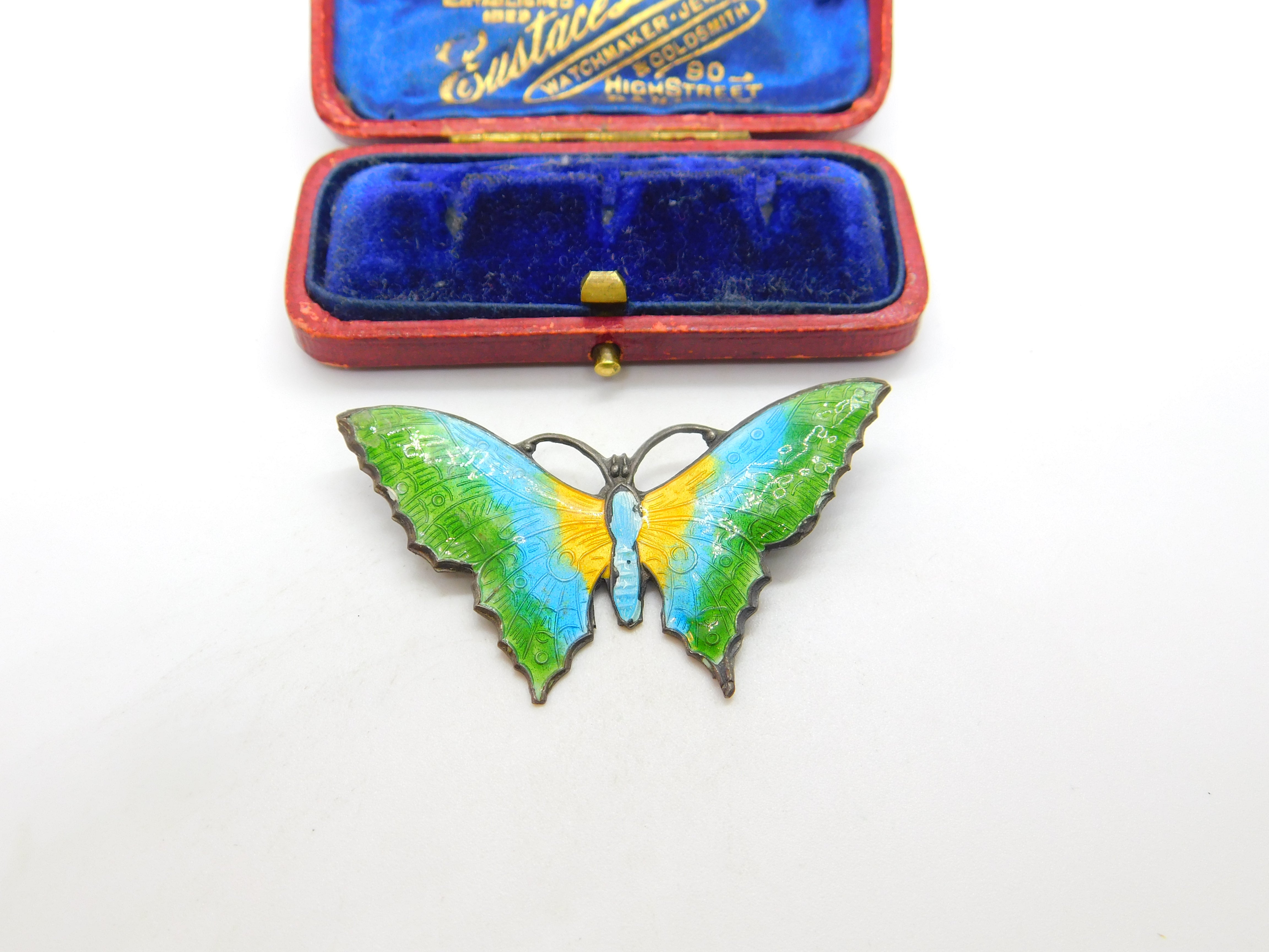 Scandinavian Sterling Silver Colourful Enamel Butterfly Brooch c1930 Antique