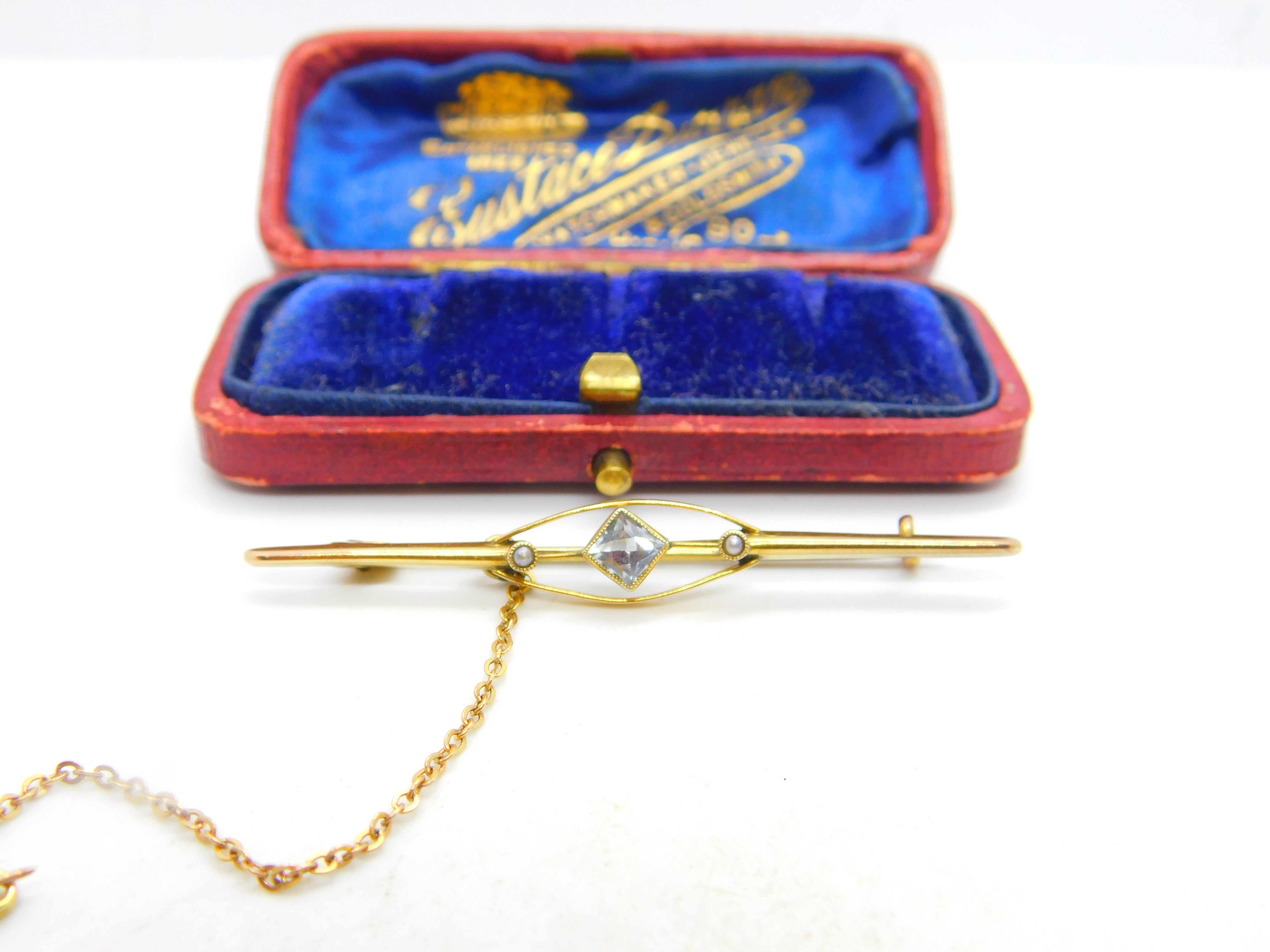 Edwardian 9ct Gold, Blue Topaz & Seed Pearl Sweetheart Brooch c1910 Antique