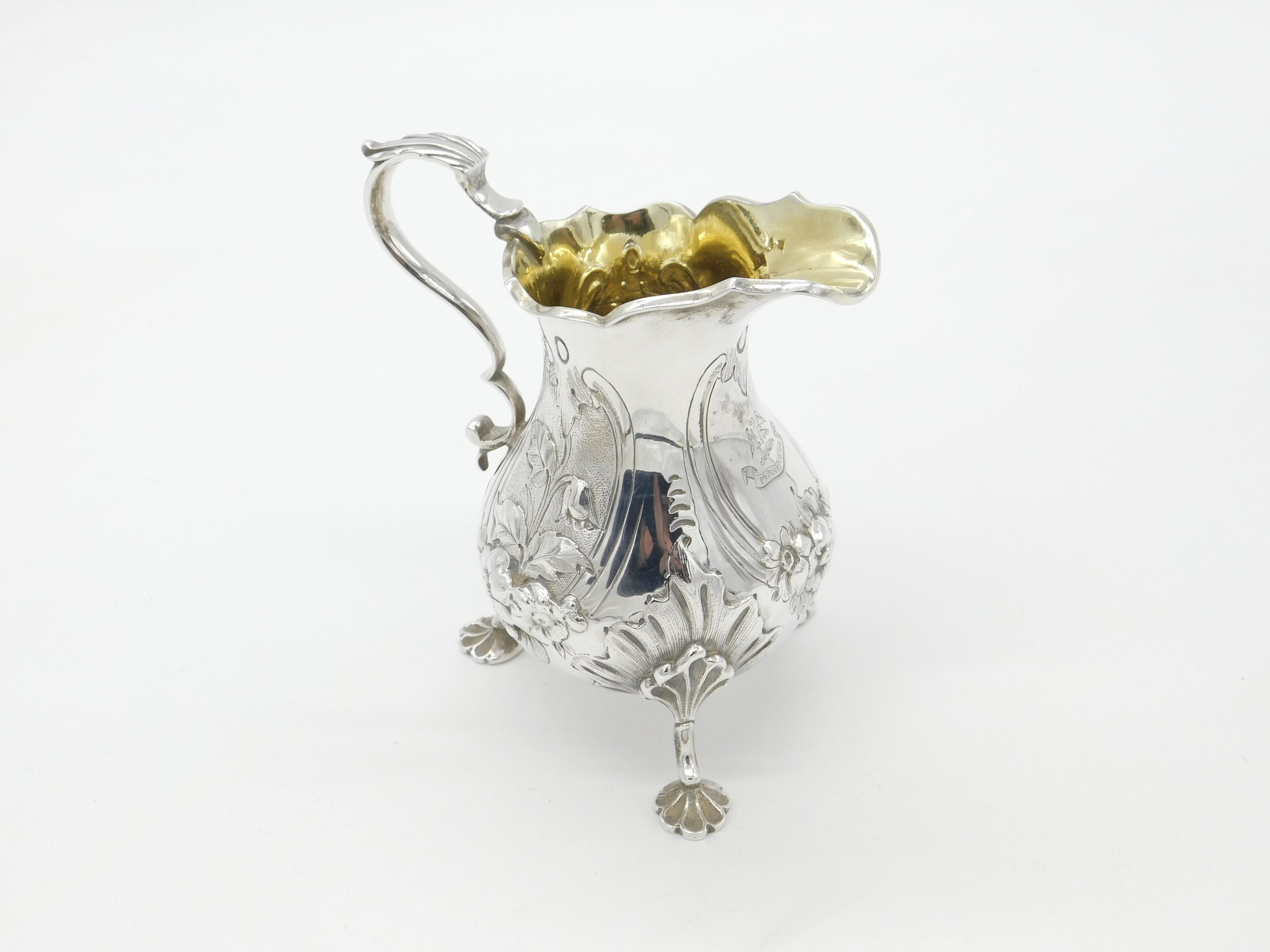 Victorian Sterling Silver Floral Leaf Pattern Cream Jug 1866 London Antique