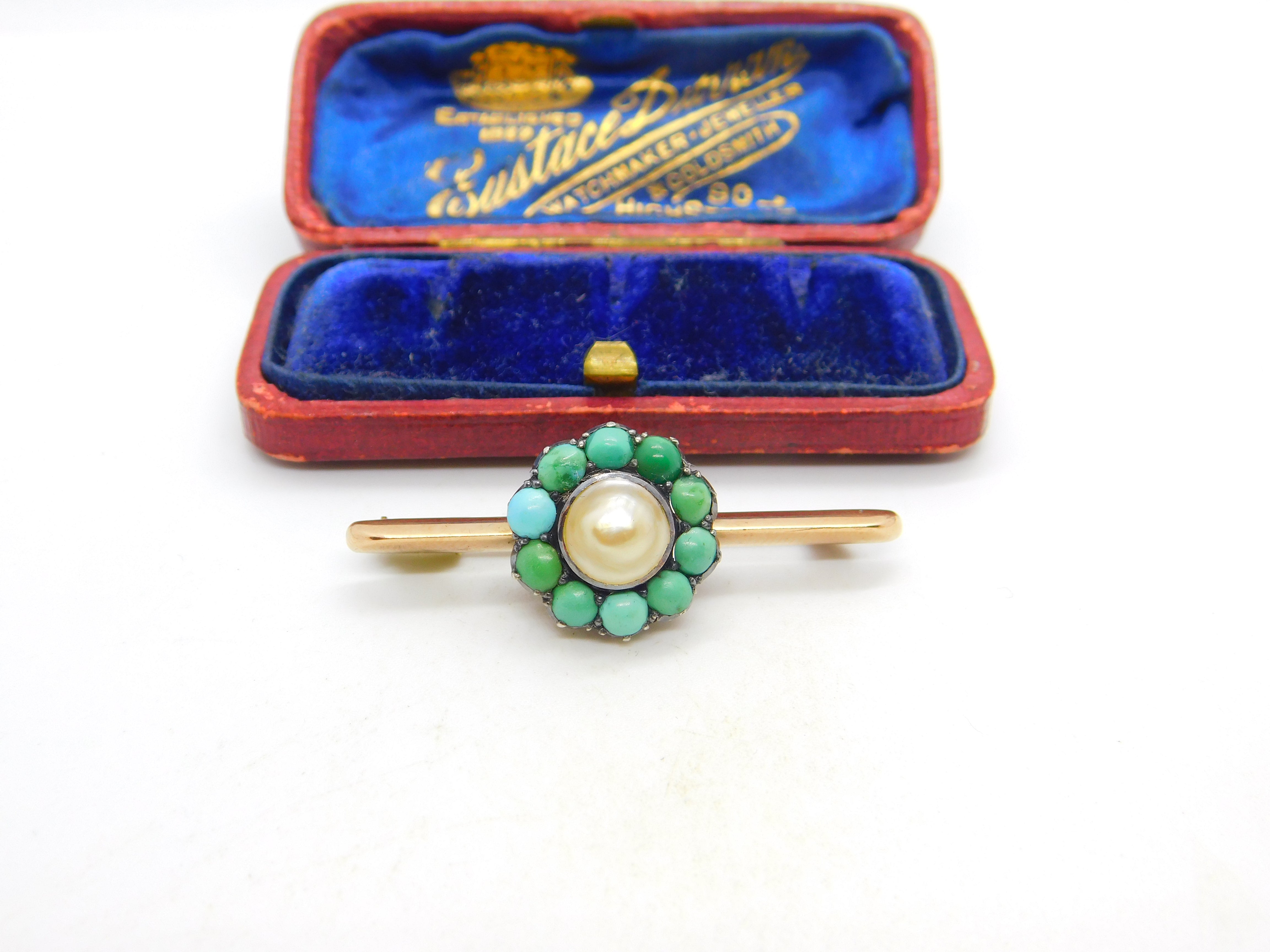 Victorian 9ct Gold, Turquoise & Blistered Pearl Floral Brooch c1880 Antique