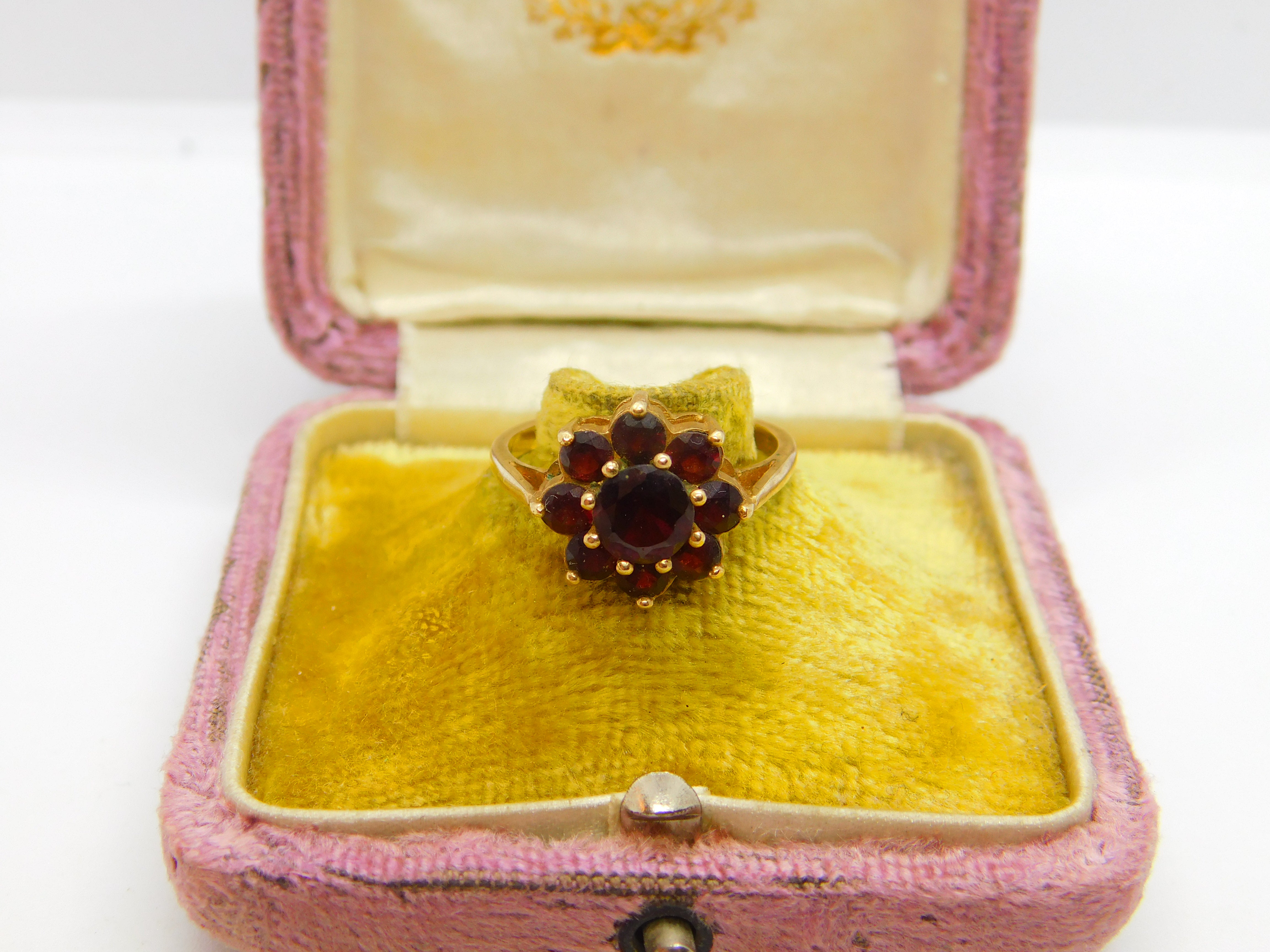 9ct Yellow Gold Bohemian Garnet Cluster Vintage 1994 Birmingham Size O UK