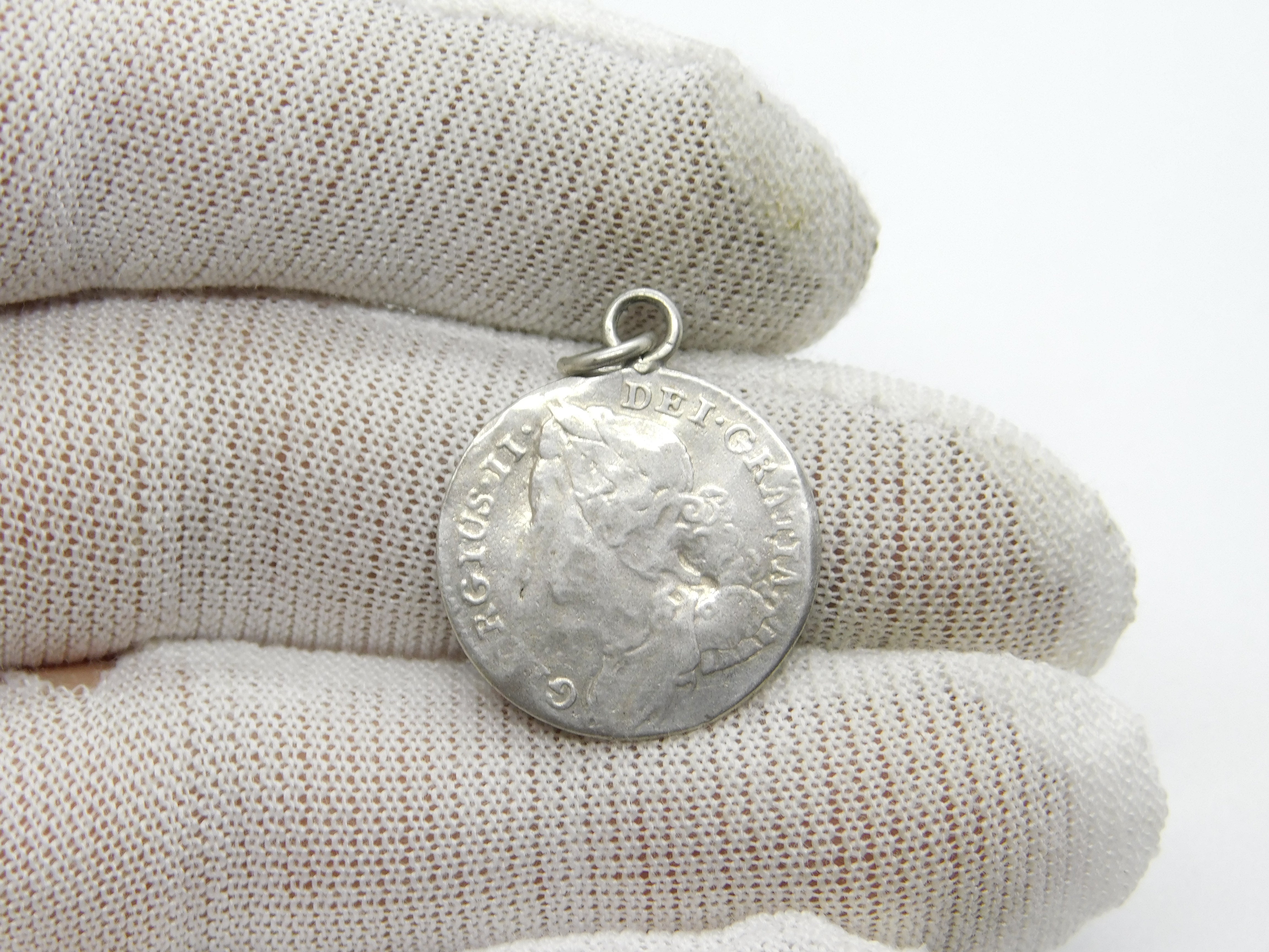 King George II Silver Shilling 1745 Coin Charm or Pendant Fair Condition Antique