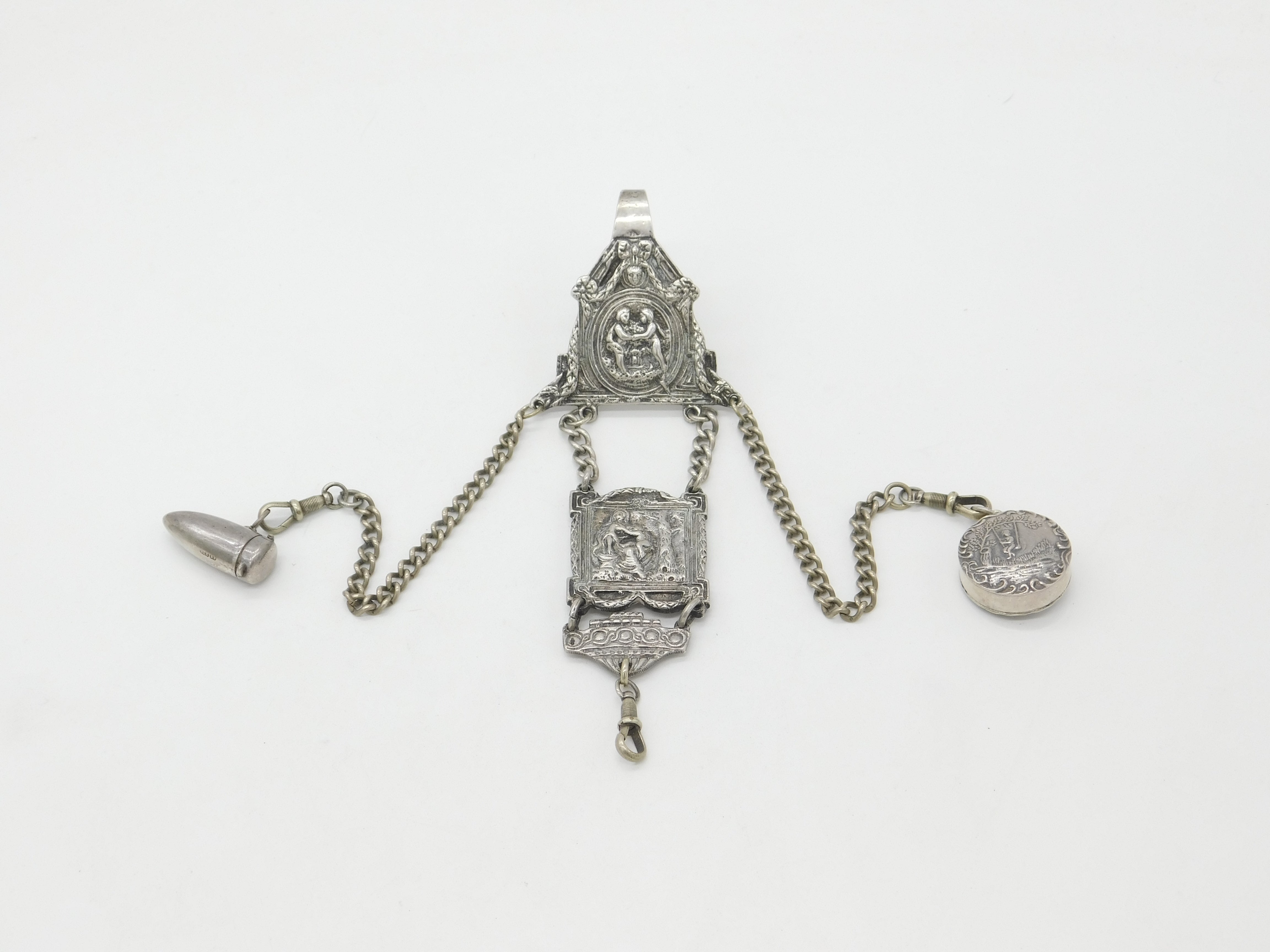 Victorian Hanau Sterling Silver Art Nouveau Chatelaine with Tools Antique c1860