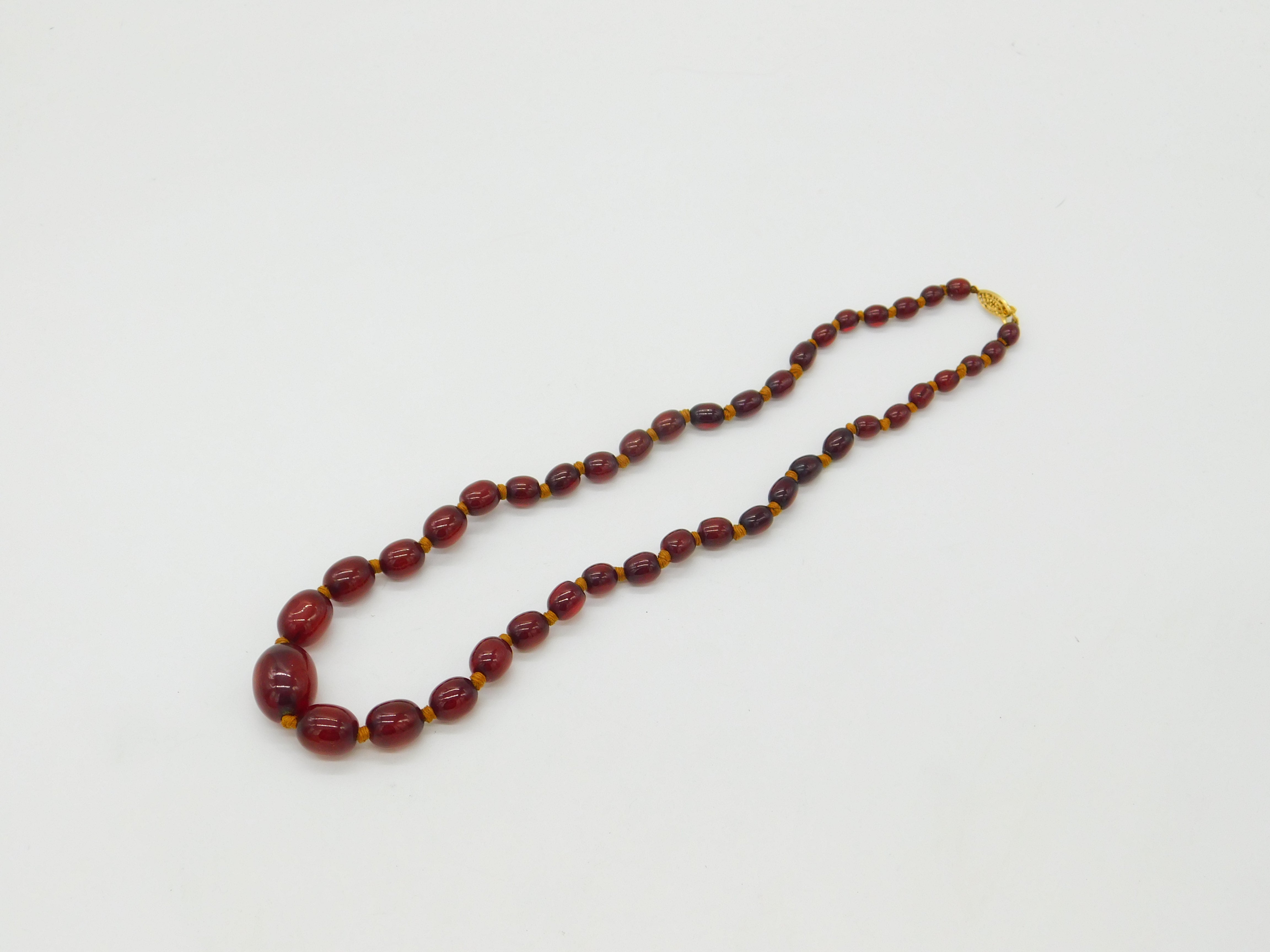 Graduated Cherry Amber Bakelite Necklace Sterling Silver Clasp 20" Length