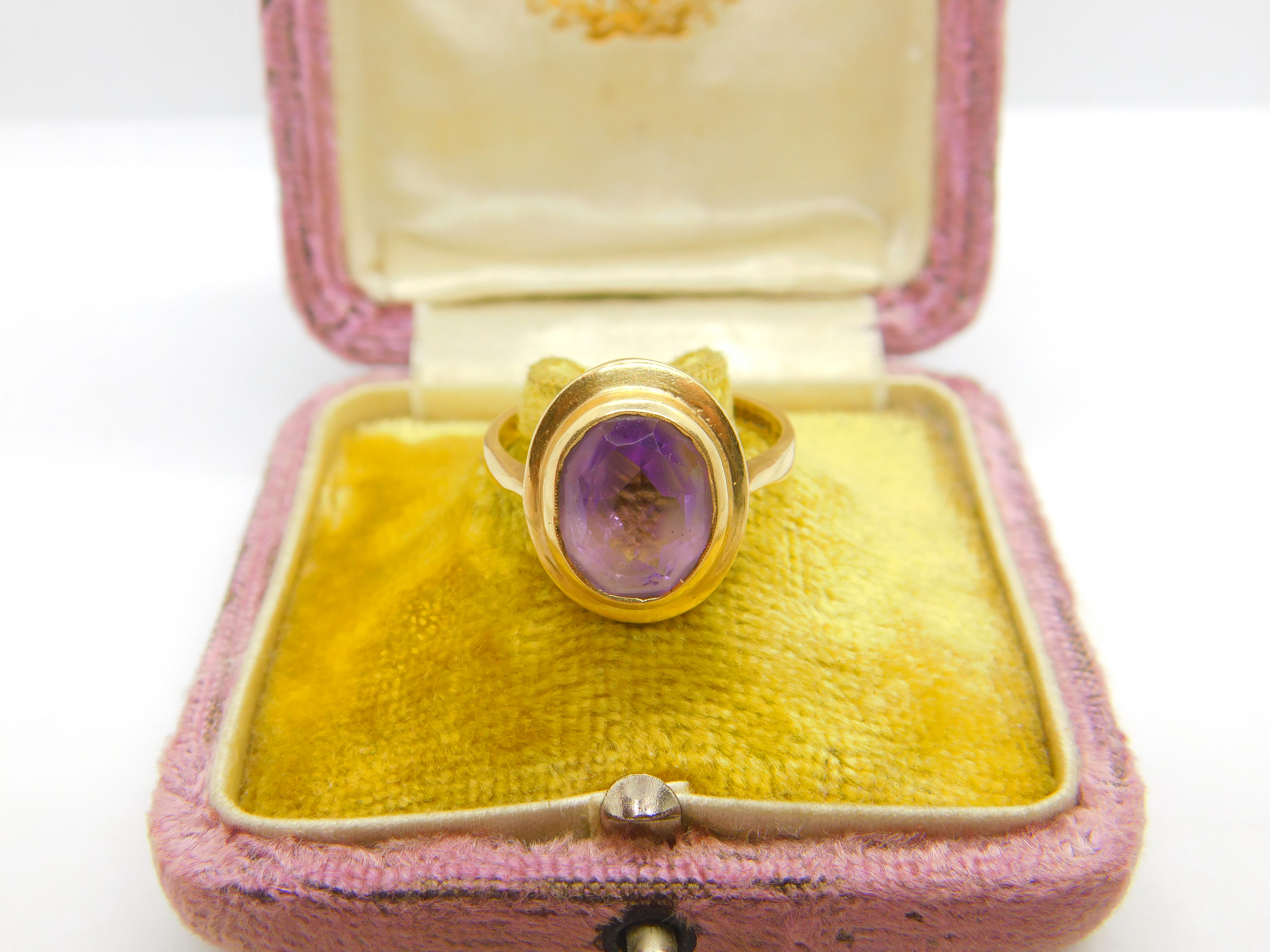 9ct Yellow Gold & Purple Amethyst Dress Ring 1973 Vintage Birmingham