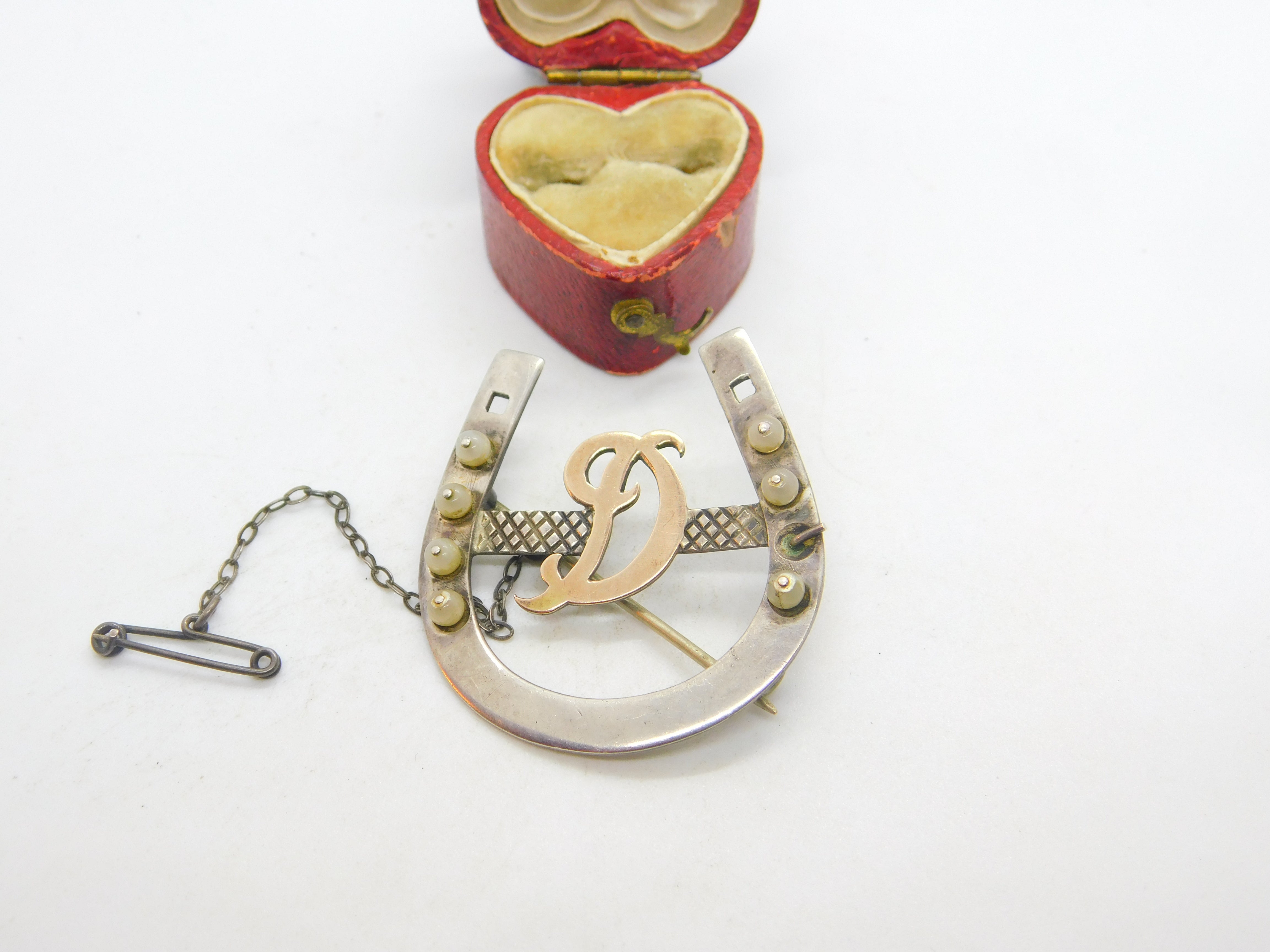 Victorian 9ct Rose Gold & Sterling Silver D Initial Brooch Antique c1900