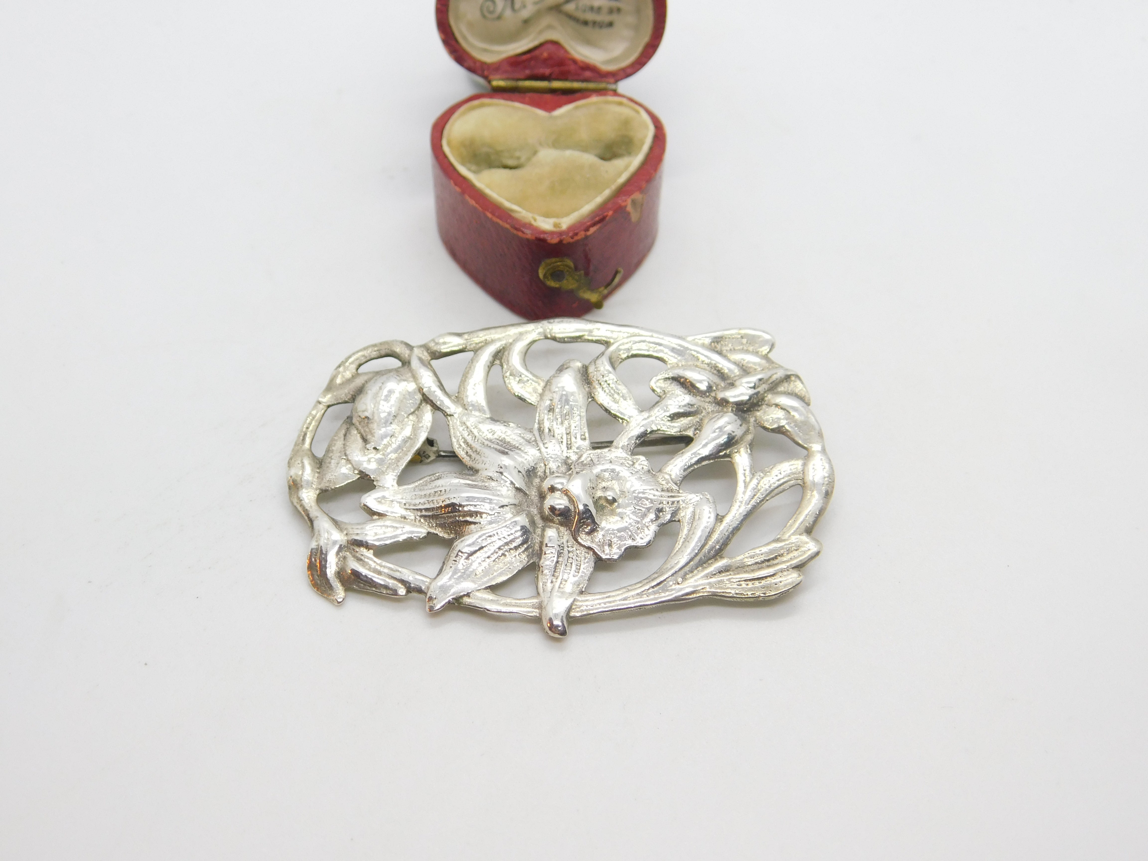 Australian Sterling Silver Daffodil Brooch Pin Antique c1920 Art Deco