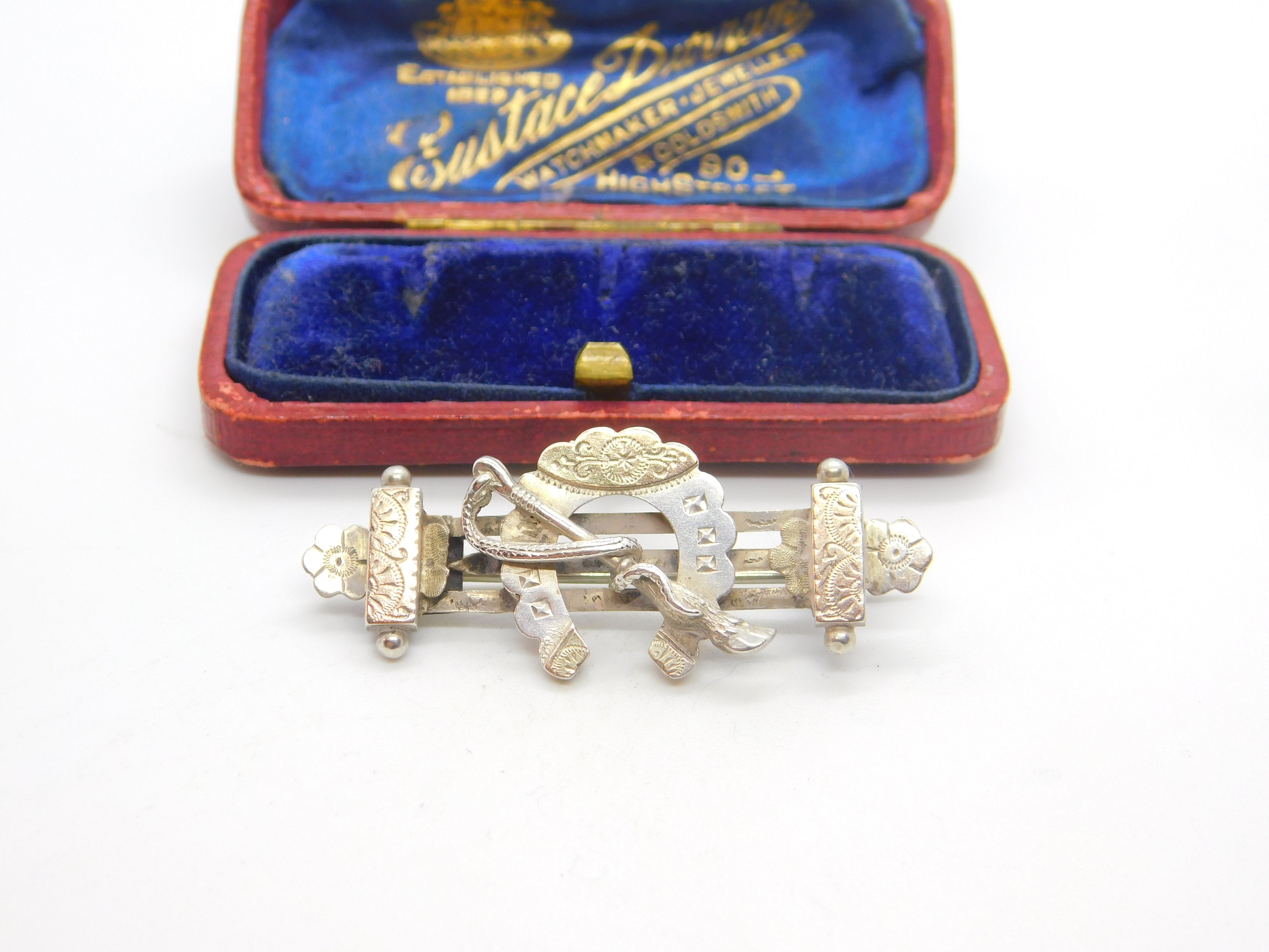 Victorian Sterling Silver Horseshoe, Crop & Showjump Brooch 1888 Birmingham