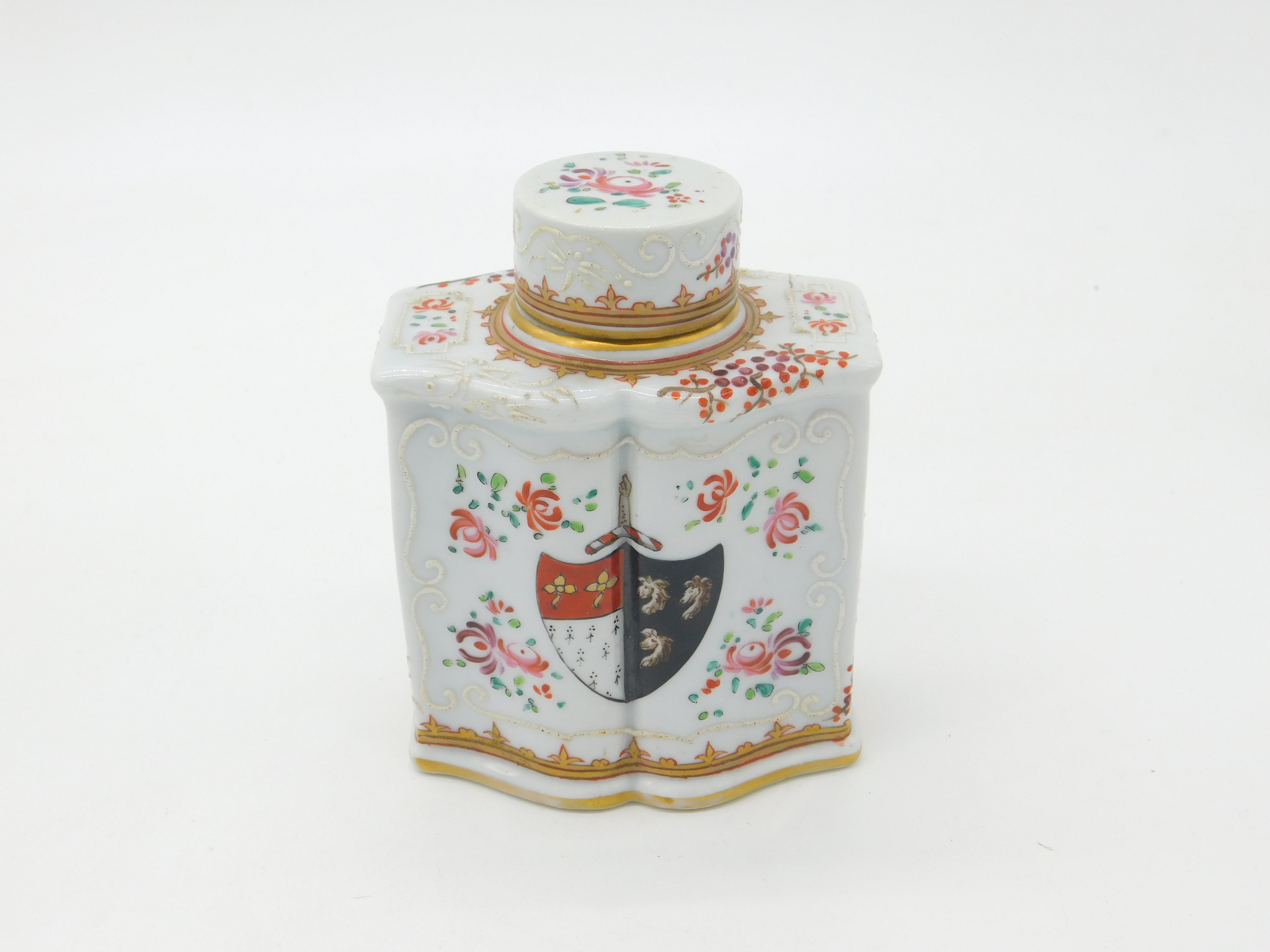 Early 19th Century French Armorial Crested China Tea Caddy Antique c1820