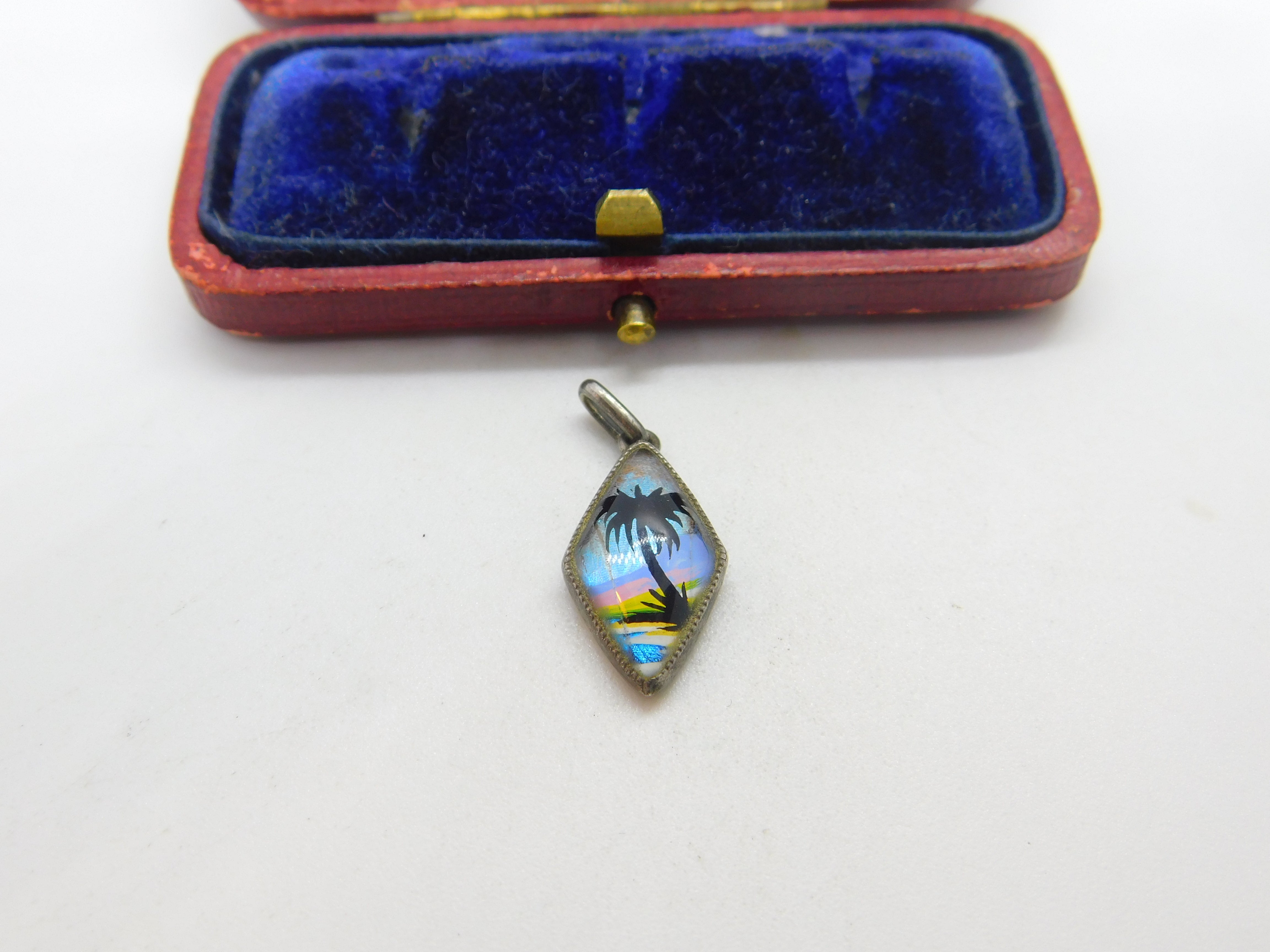 TLM Sterling Silver & Morpho Butterfly Wing Tropical Island Drop Pendant Antique