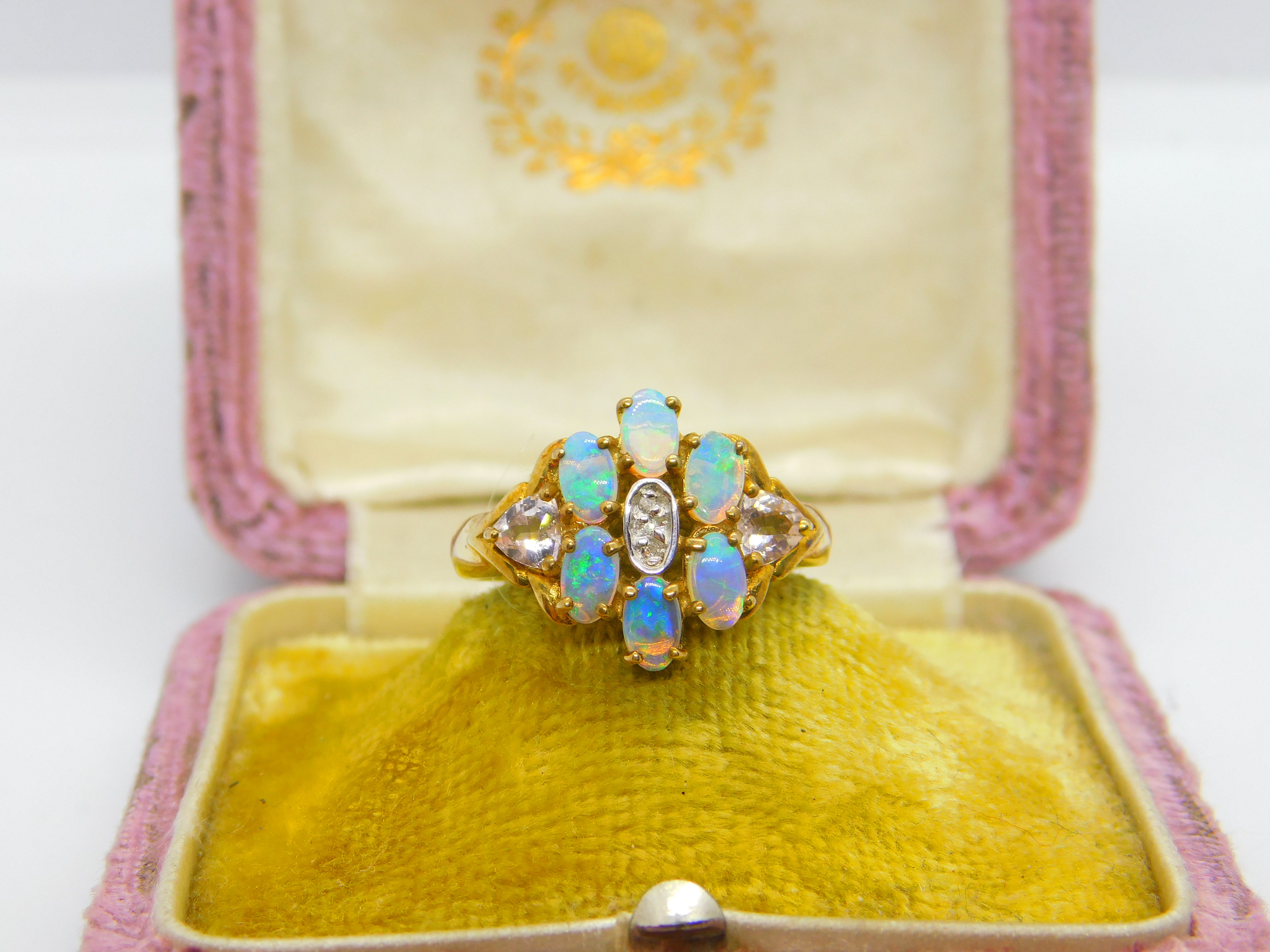 9ct Yellow Gold, Diamond & Water Opal Cluster Ring Vintage Birmingham